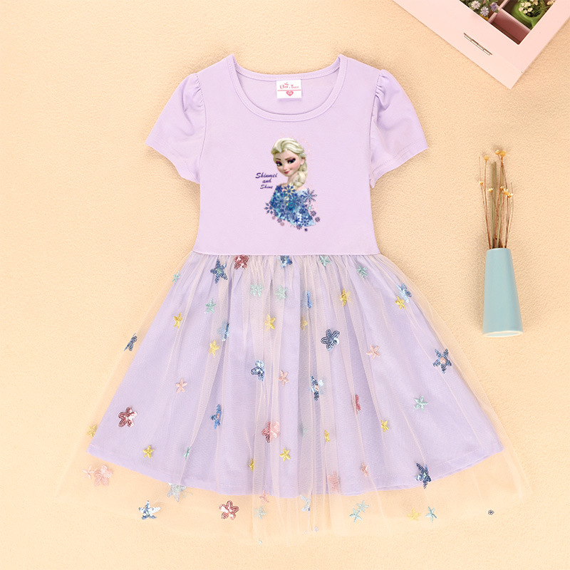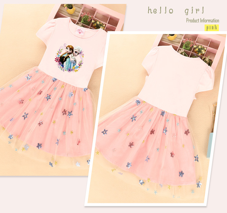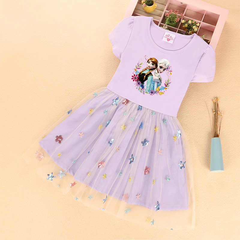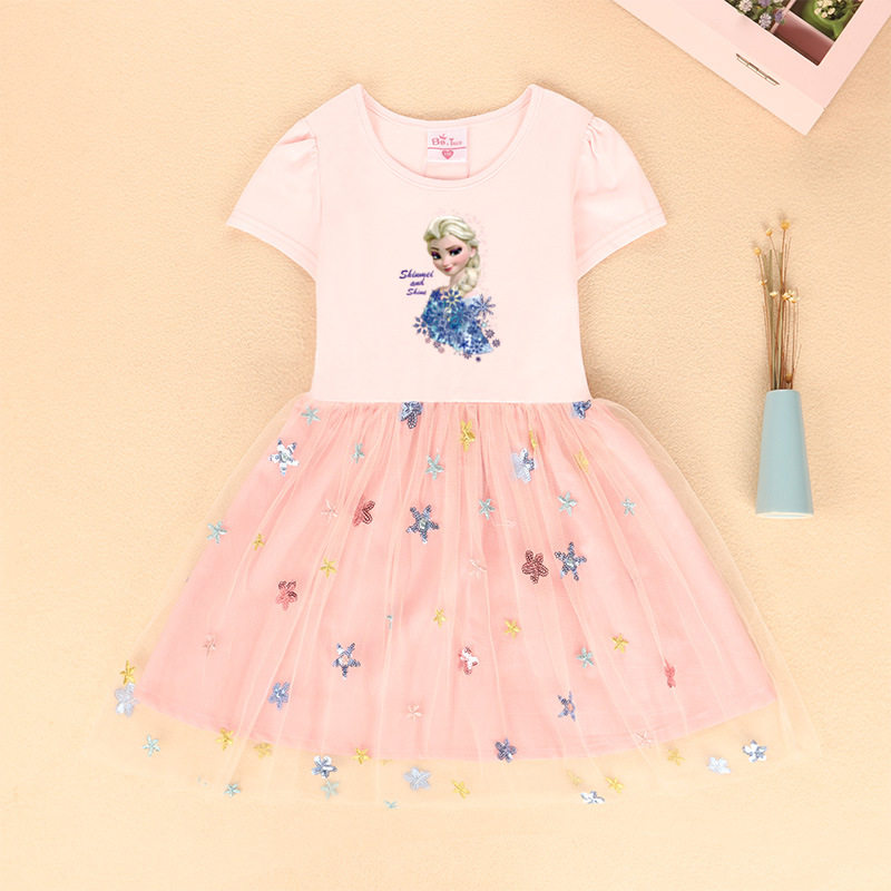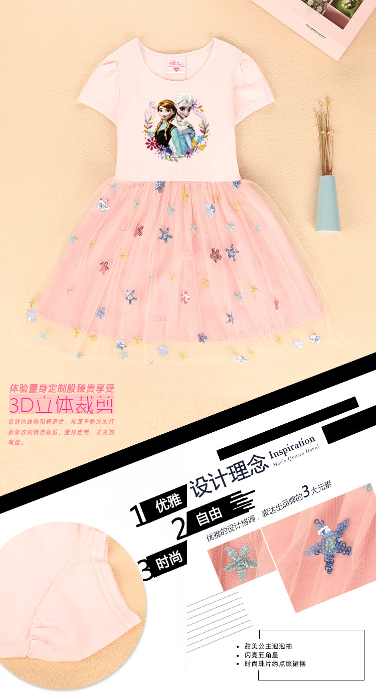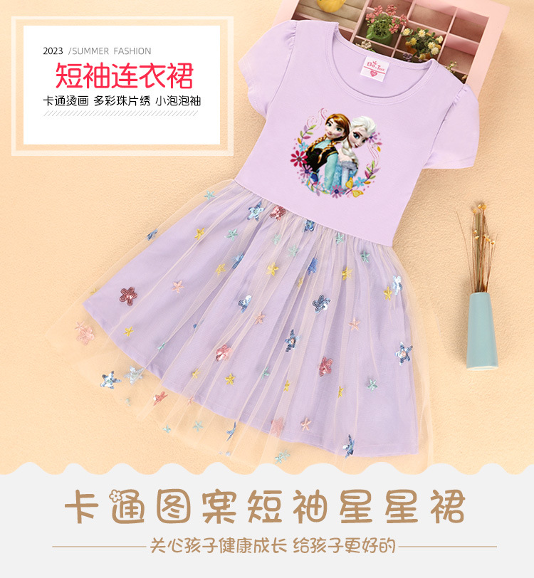 여자 여름 원피스 2023 새로운 반팔 별 거즈 치마 어린이 만화 패턴 공주 치마 소녀 치마스토어 가기