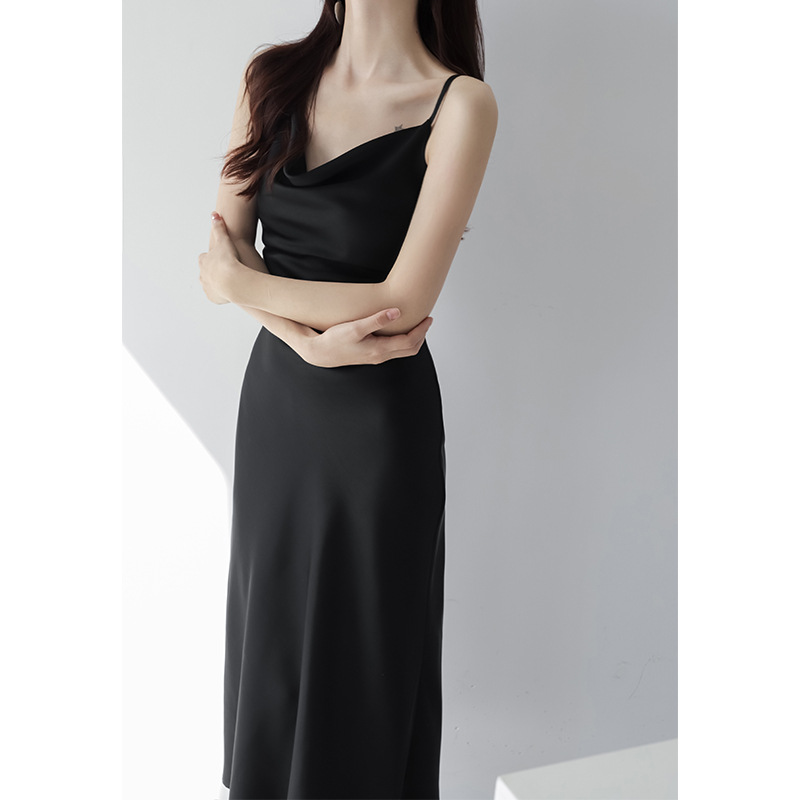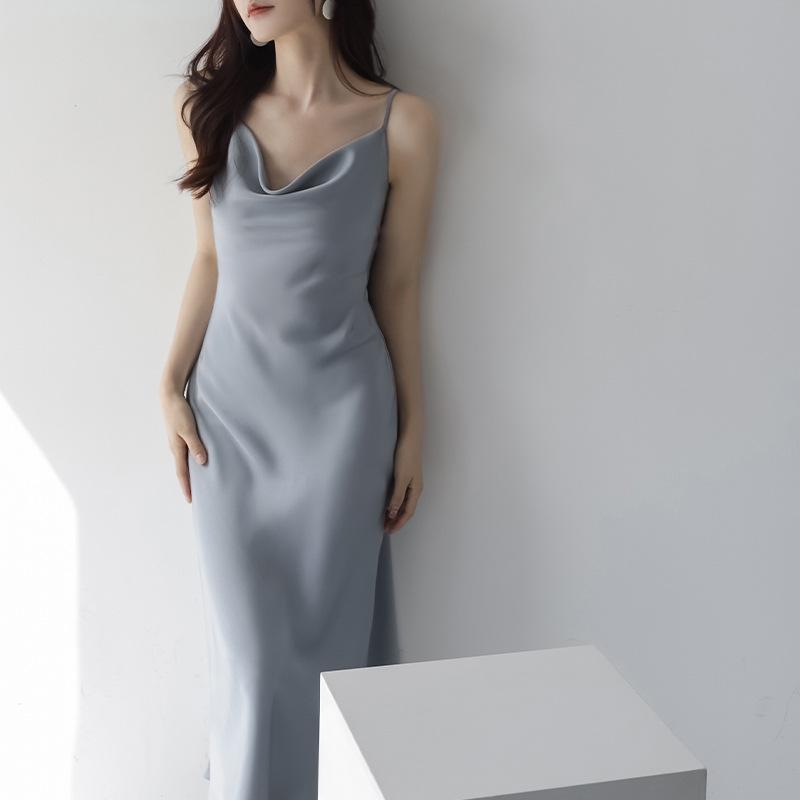 MZOMXL Acetic Satin Collar Sling 원피스 여성의 2024 년 여름 새로운 민소매 놀라운 원피스