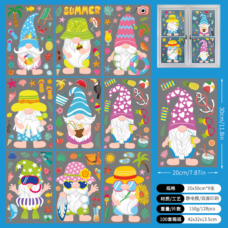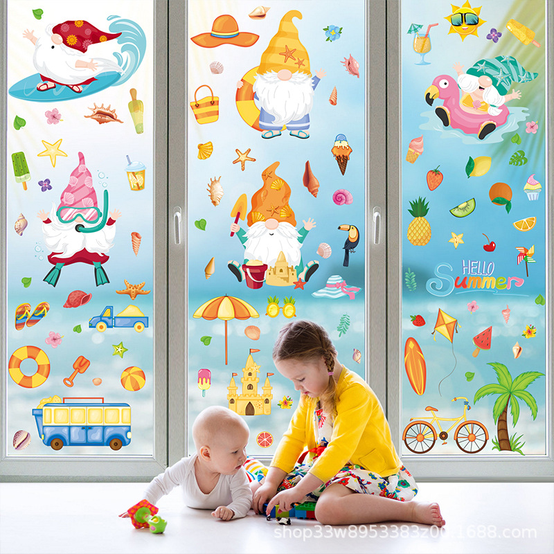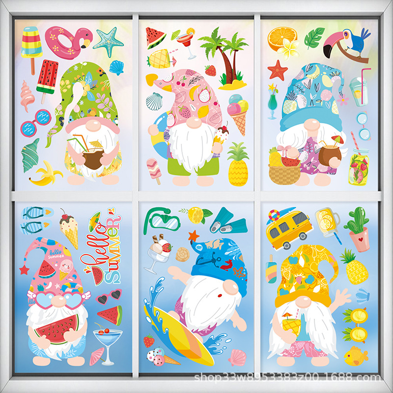 2024 국경 새로운 하와이 축제 스티커 바다 여름 수영장 파티 창 유리 장식 정전기 스티커스토어 가기