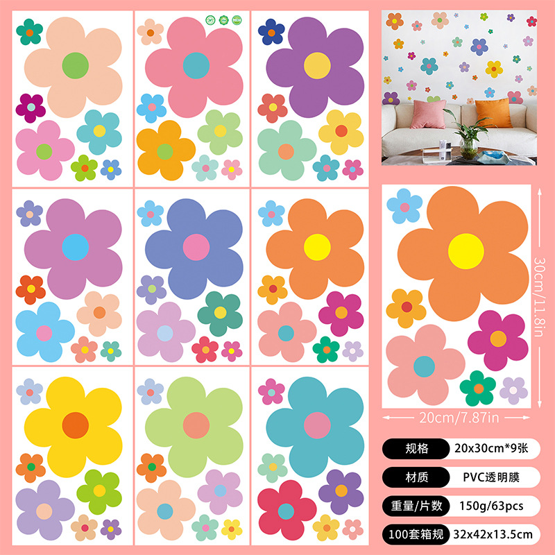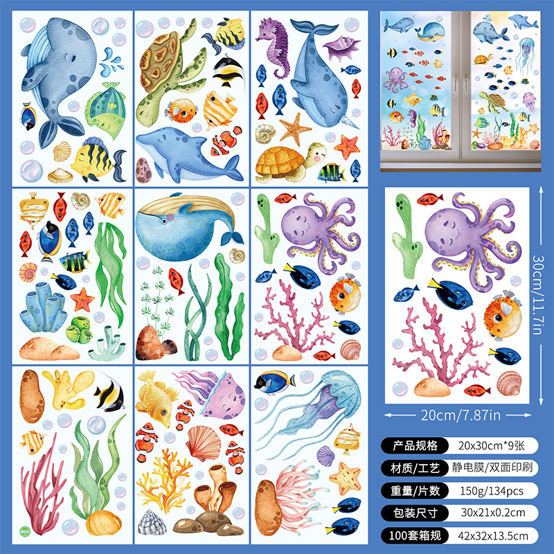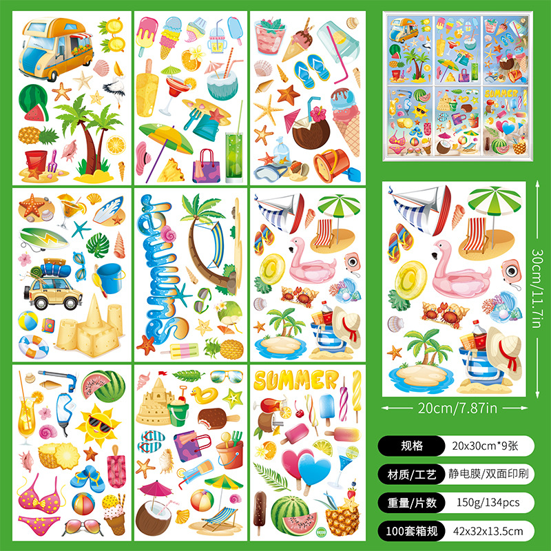 产品名称:可移除窗贴 产品包装:OPP包装 产品材质:PVC静电膜 100套装箱重量:大约15千克 箱规:42*32*13.5cm 产品规格:20*30cm*9张 量大价格更优惠欢迎新老客户光临 商品标价不含税,如需开票请另加税点,详情请咨询客服! 注意:墙贴发出时默认opp透明袋装平铺发货