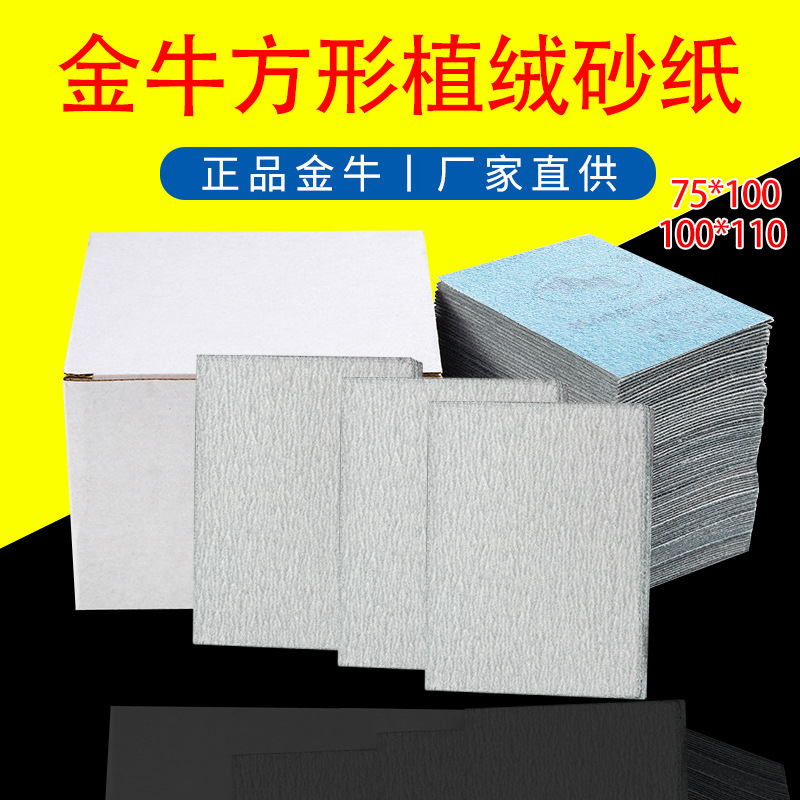 황소 자리 광장 몰려 사포 75*100 건조 연삭 플로킹 사포 자체 접착 사각형 금속 자동차 페인트 연마 시트
