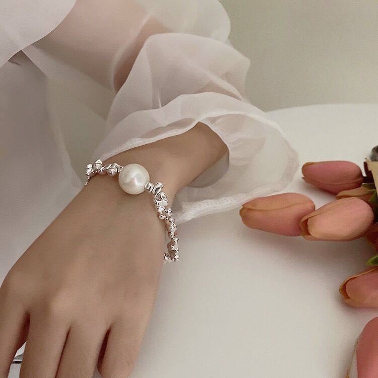 • 큰 깨진 실버 진주 팔찌