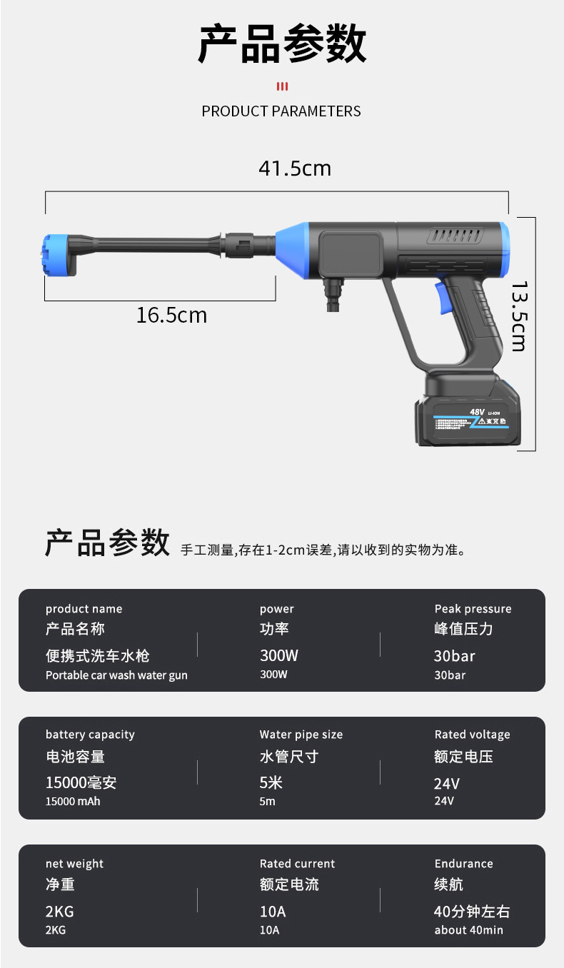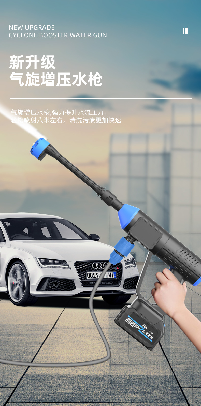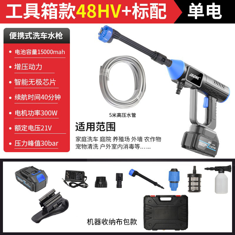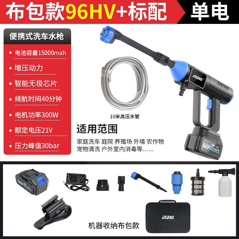 신무선 세차 물총 휴대용 가정용 정원 급수 고압 물총 핸드 헬드 고출력 세차 세탁기