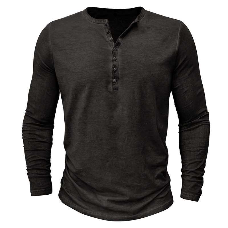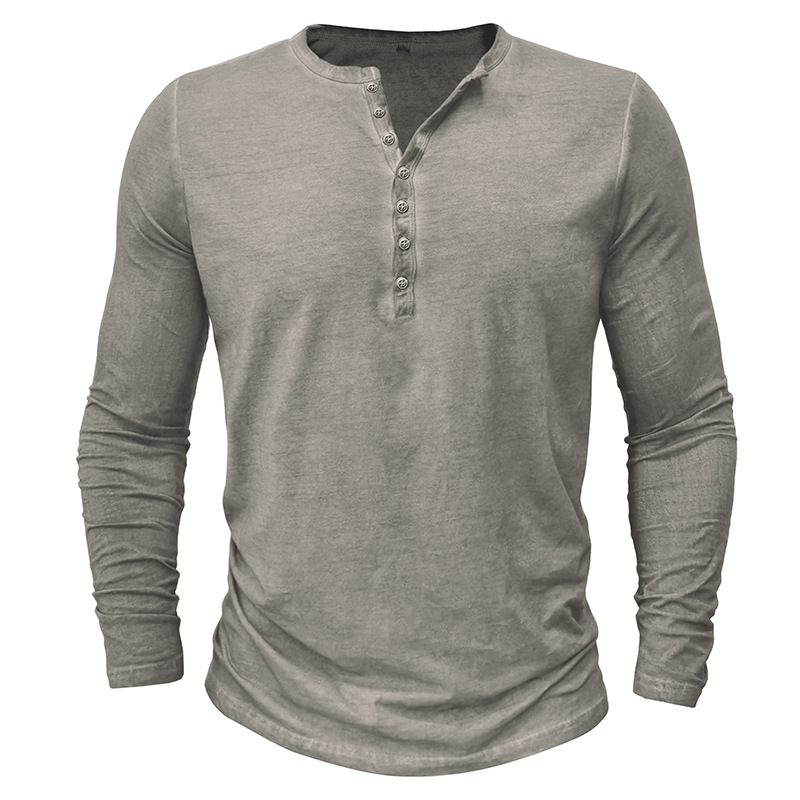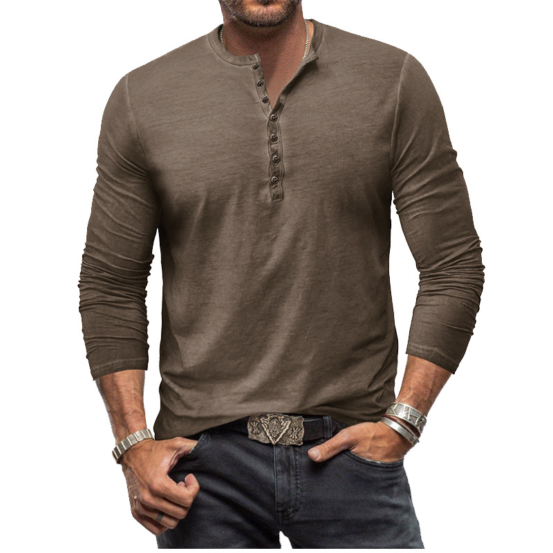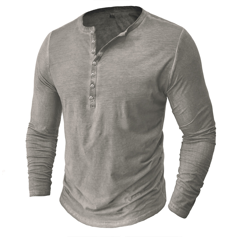 아마존 남성용 타이다이 헨리 슬림핏 레트로 긴팔 티셔츠 해외 무역 버튼 워싱 올드 브이넥 남성용 티셔츠