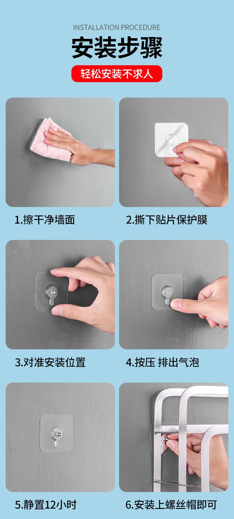구멍이없는 비 마킹 나사 고착 강한 접착 후크 가정용 무거운 손톱이없는 타일 벽걸이 자체 접착 후크스토어 가기