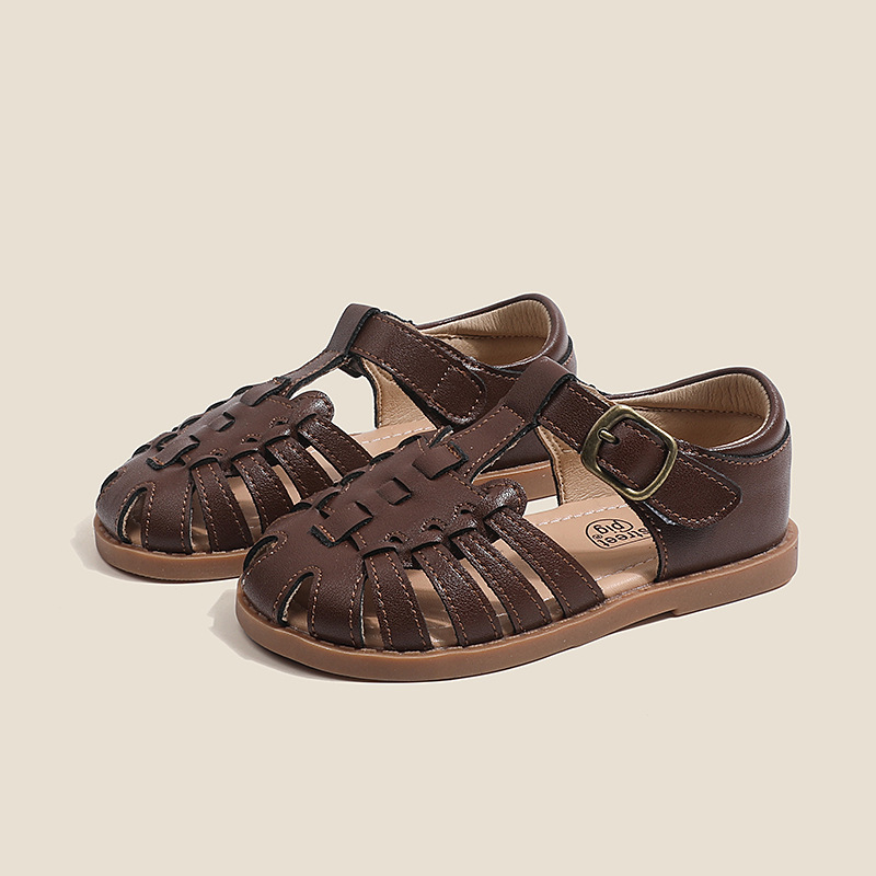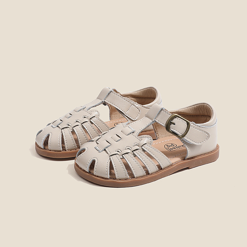 어린이 샌들 여름 중소 소녀 비치 신발 22-31 크기 사용자 정의 가죽 아기 샌들 인터넷 연예인 폭발