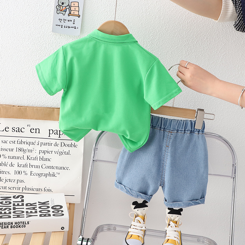 어린이 옷깃 폴로 셔츠 어린이 티셔츠 소년 반팔 여름 아동 의류 어린이 다목적 데님 반바지 세트 도매