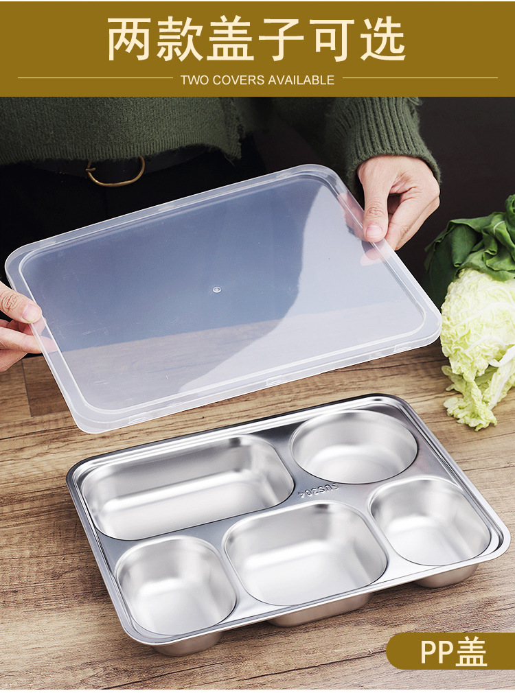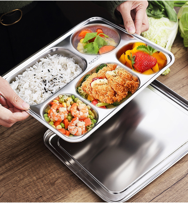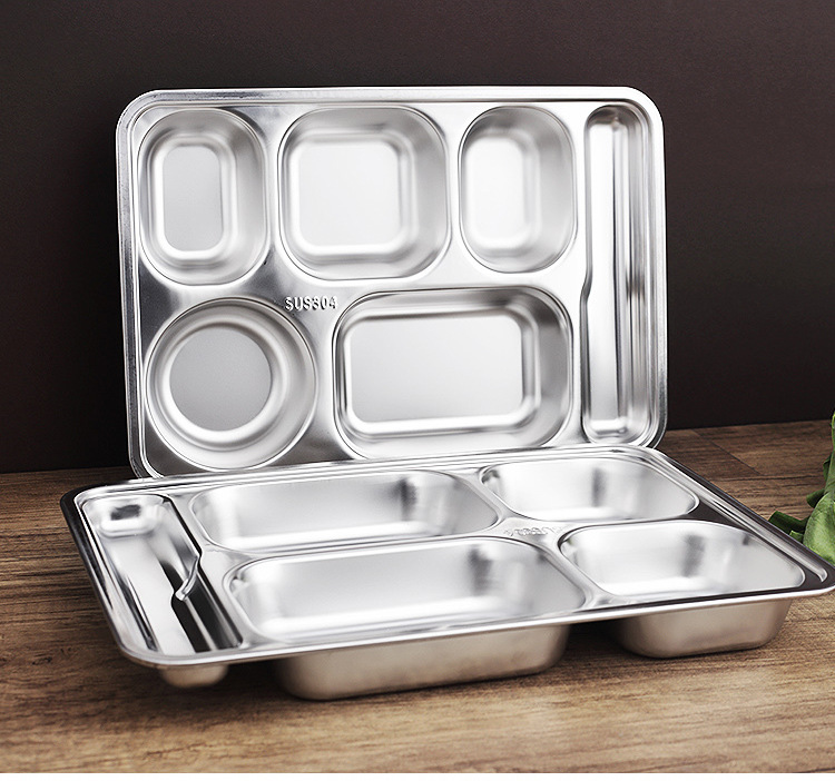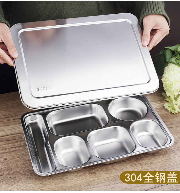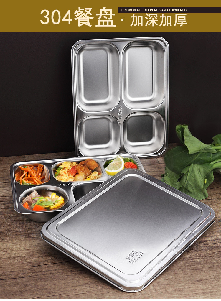 식품 학년 304 스테인레스 스틸 디너 플레이트 두꺼운 분리 판 매점 학교 분할 접시 깊은 대형 도매 뚜껑