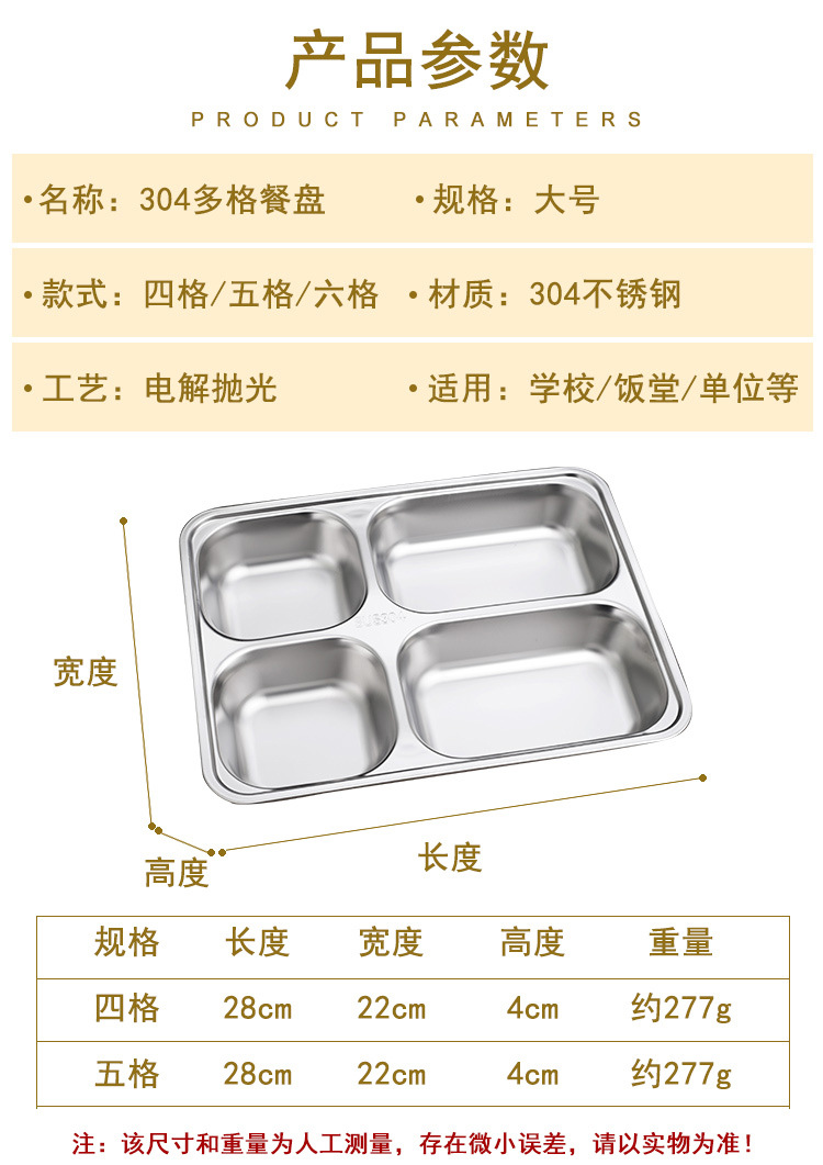 • 304 스테인레스 스틸 디너 플레이트 대형 4 칸