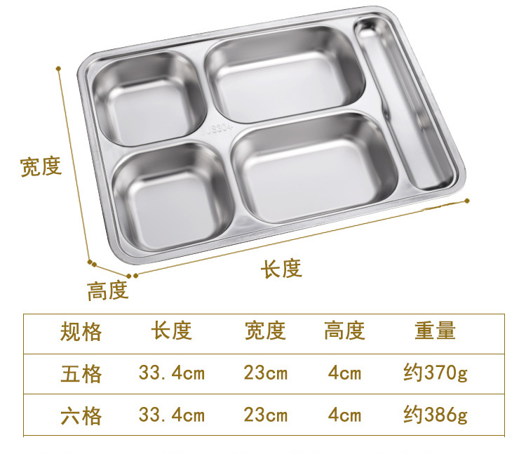 식품 학년 304 스테인레스 스틸 디너 플레이트 두꺼운 분리 판 매점 학교 분할 접시 깊은 대형 도매 뚜껑스토어 가기