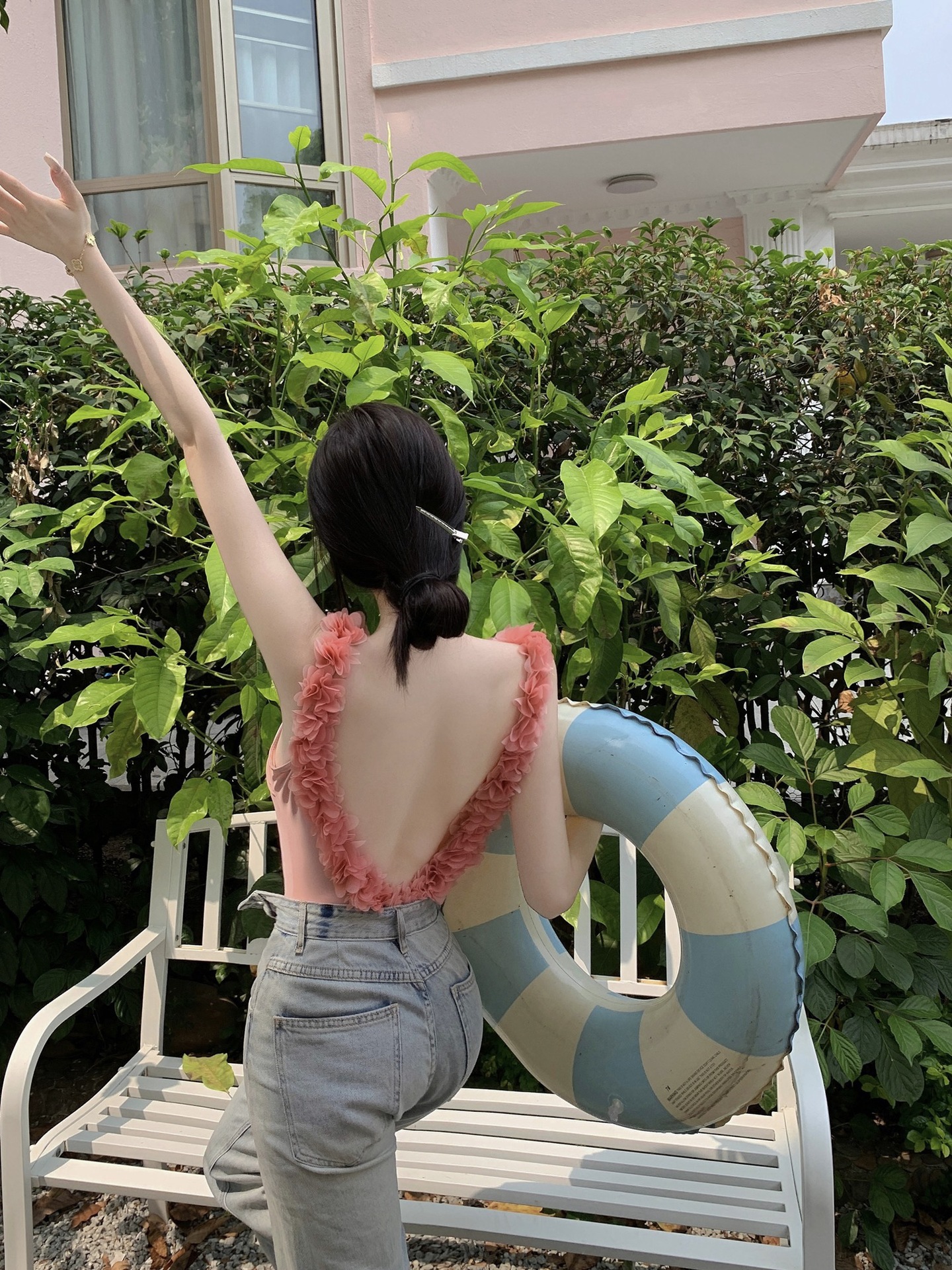 수영복 여성용 여름 2023 새로운 하이 엔드 스몰 체스트 개더링 백리스 인터넷 유명인 휴가 온천 달콤한 수영복