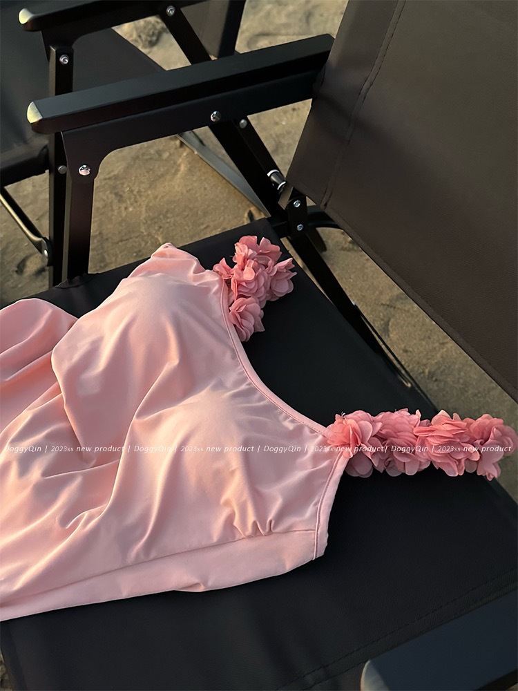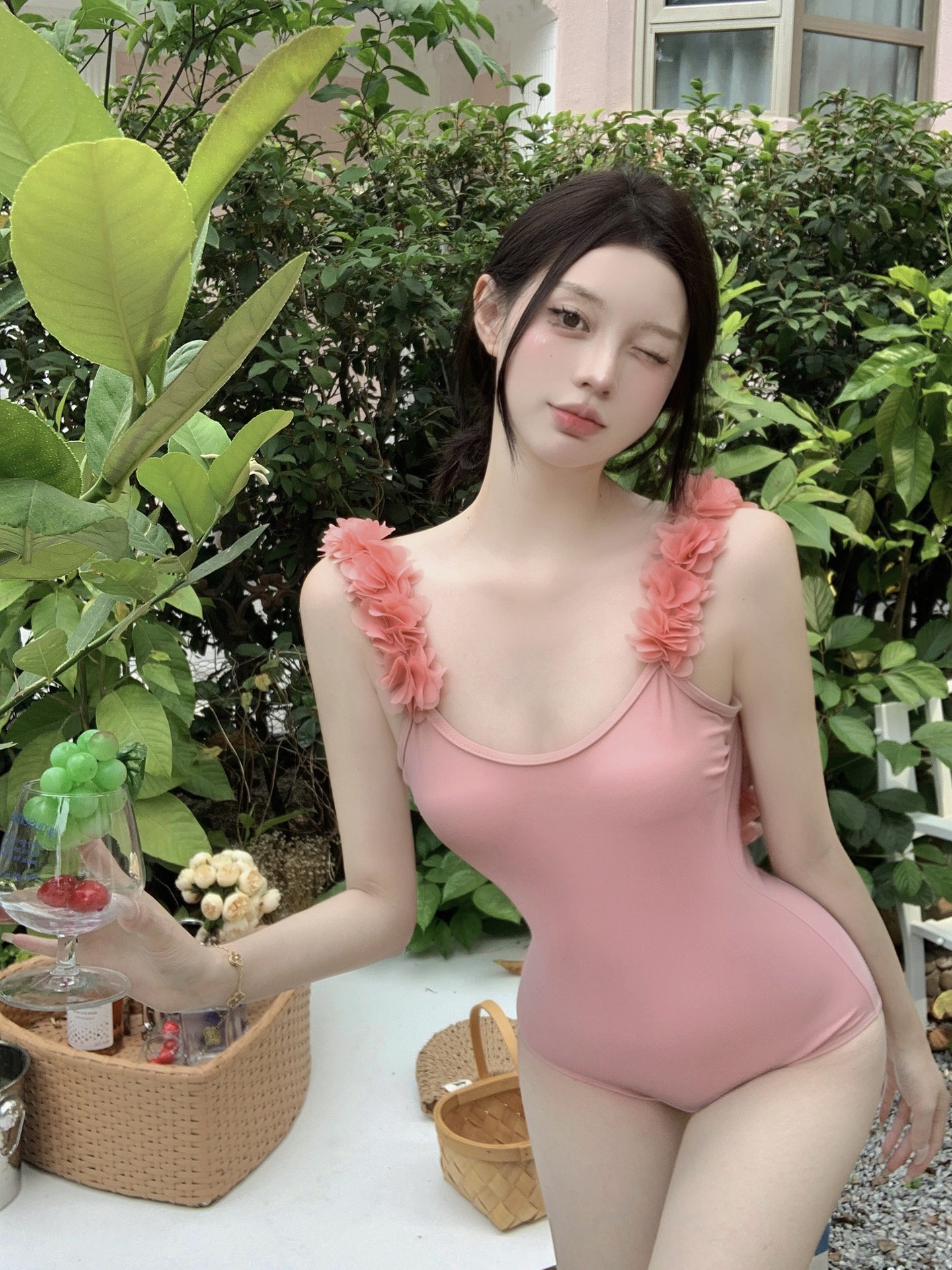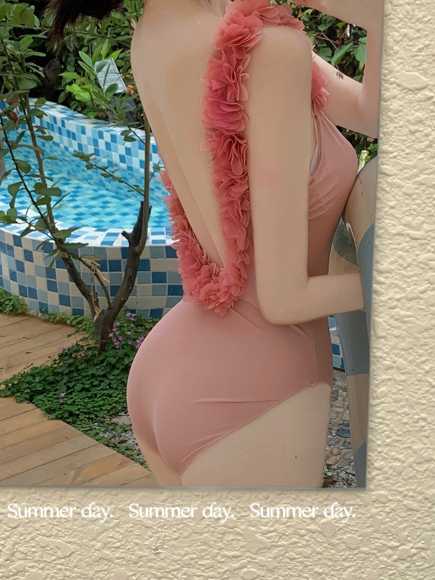 수영복 여성용 여름 2023 새로운 하이 엔드 스몰 체스트 개더링 백리스 인터넷 유명인 휴가 온천 달콤한 수영복스토어 가기