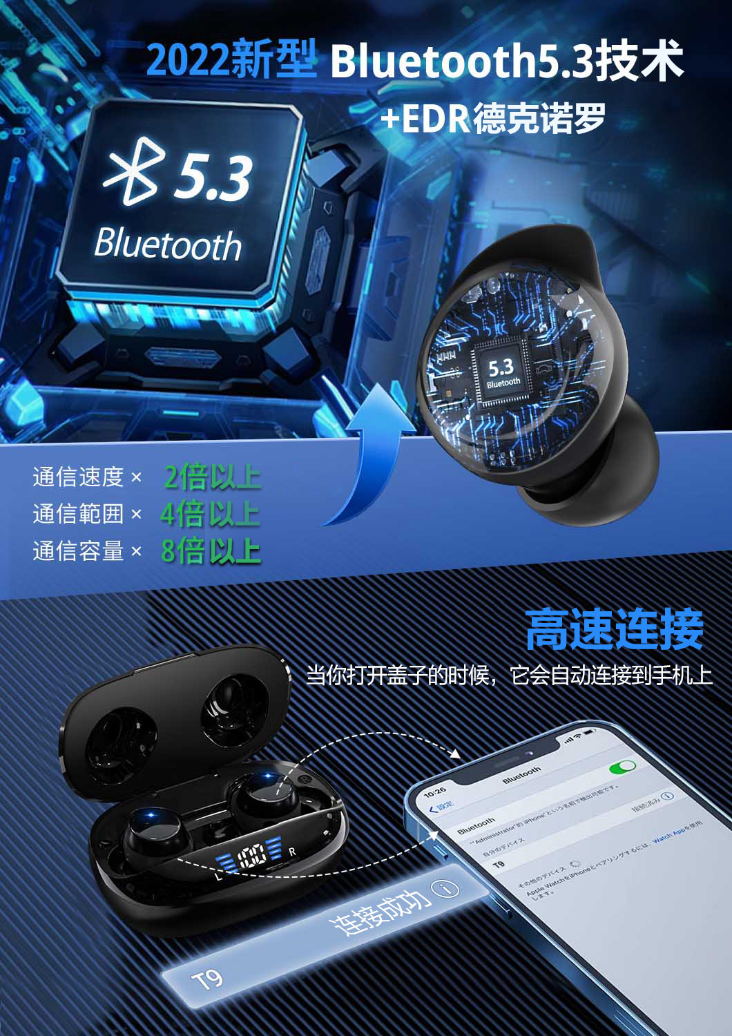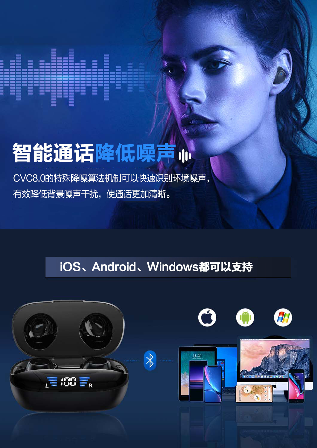 크로스 보더 아마존 새로운 디지털 디스플레이 TWS 무선 블루투스 헤드셋 미니 스포츠 소음 감소 5.3 개인 모델 인 이어 제조업체