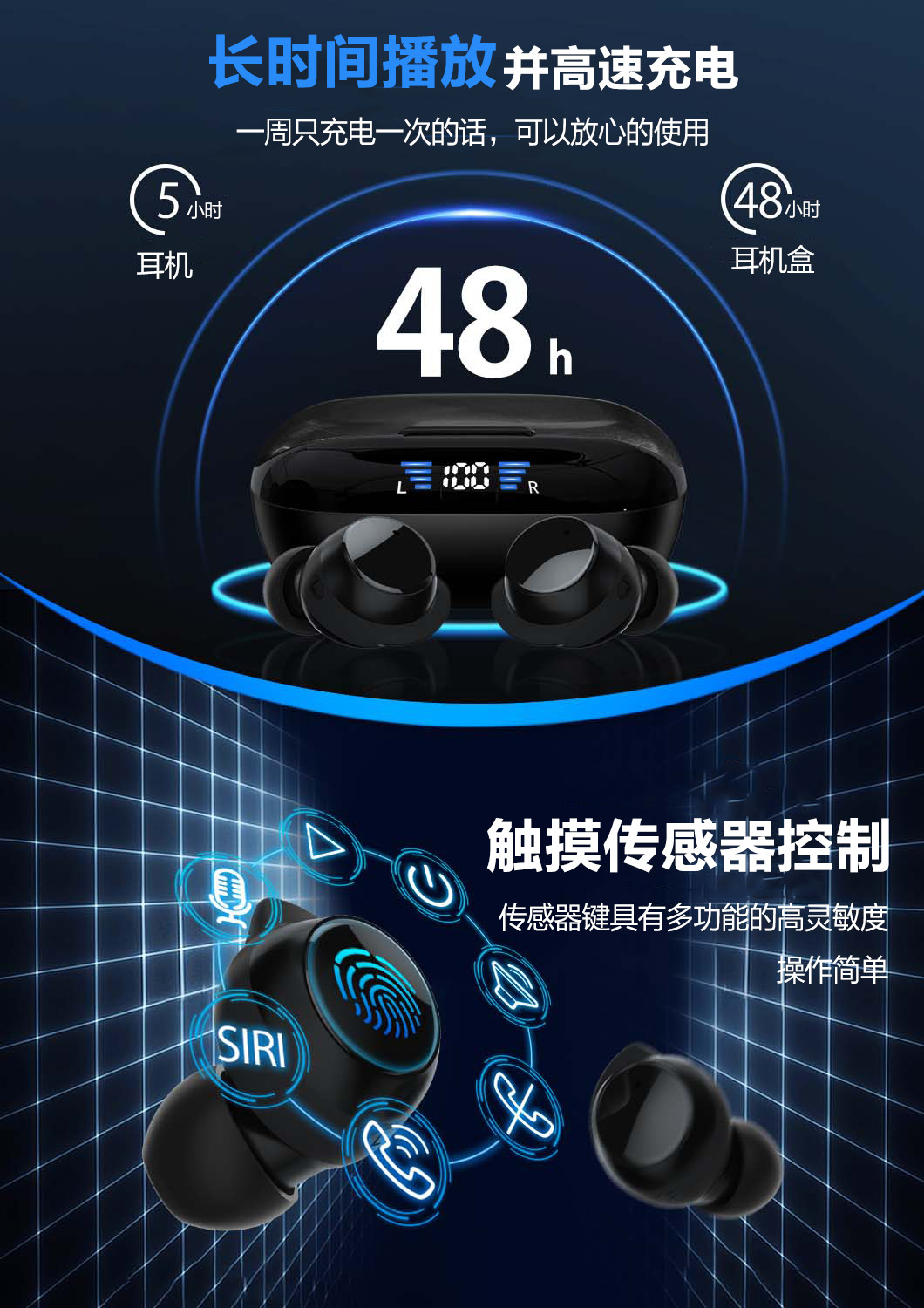 크로스 보더 아마존 새로운 디지털 디스플레이 TWS 무선 블루투스 헤드셋 미니 스포츠 소음 감소 5.3 개인 모델 인 이어 제조업체스토어 가기