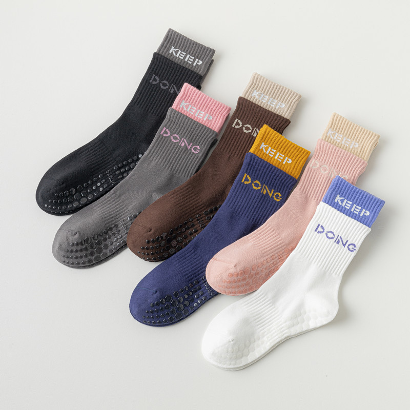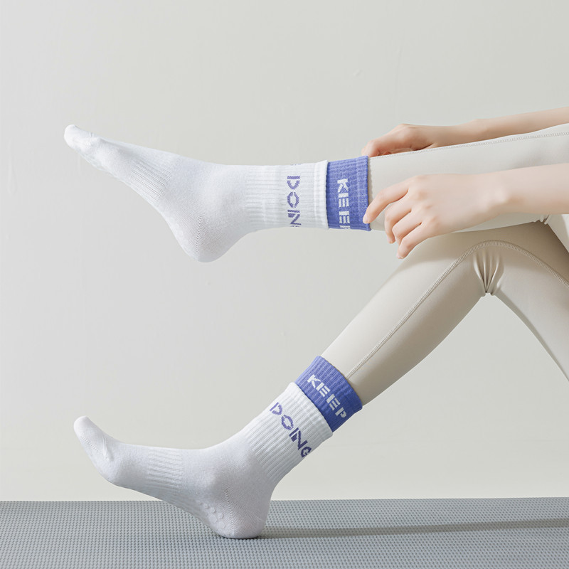 여성을위한 더블 프릴 요가 양말 뜨거운 판매 얇은 여성 중반 송아지면 양말 봄과 가을 스포츠 러닝 미끄럼 방지 스타킹스토어 가기