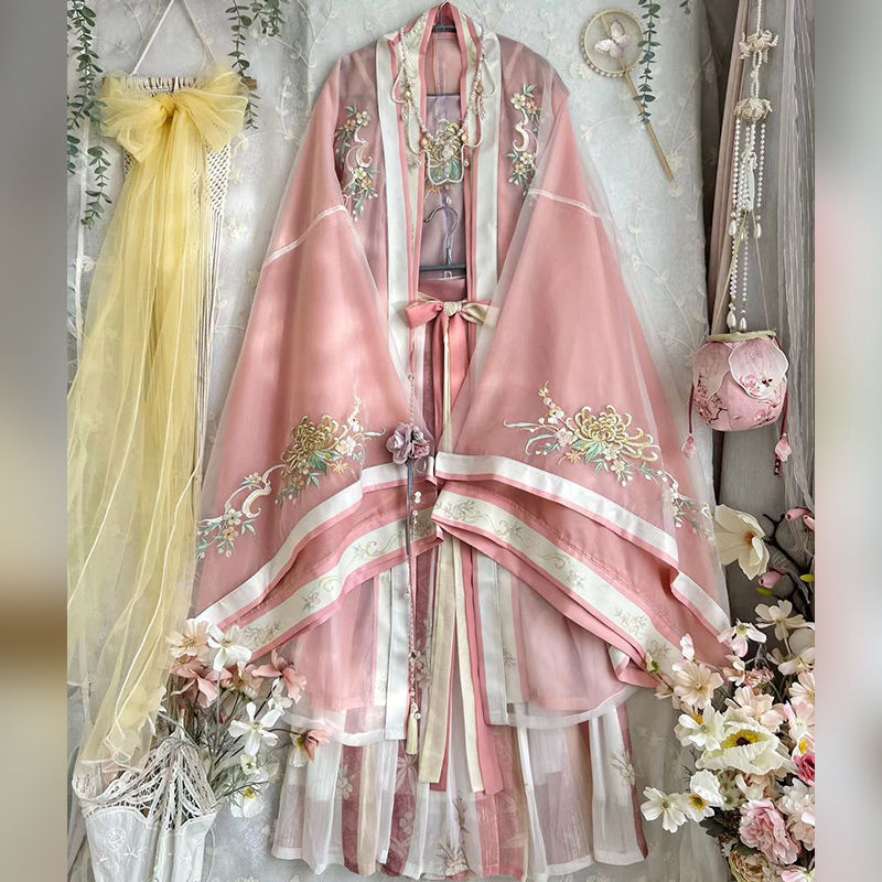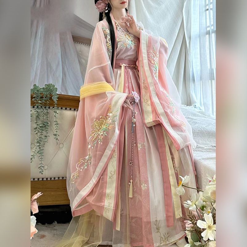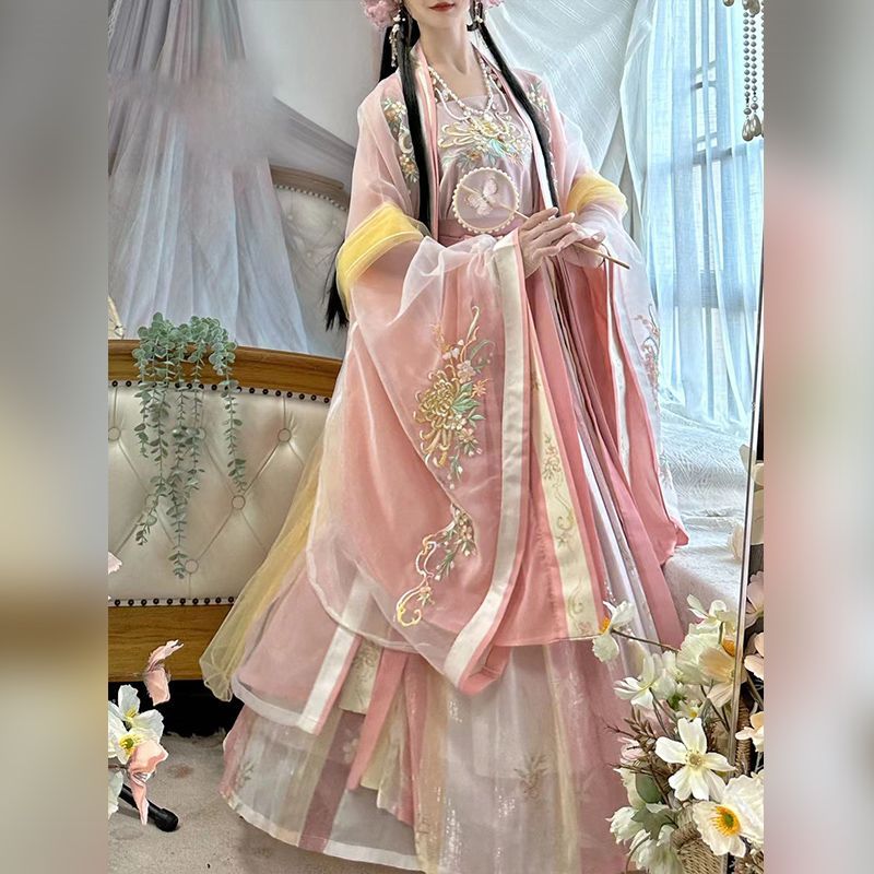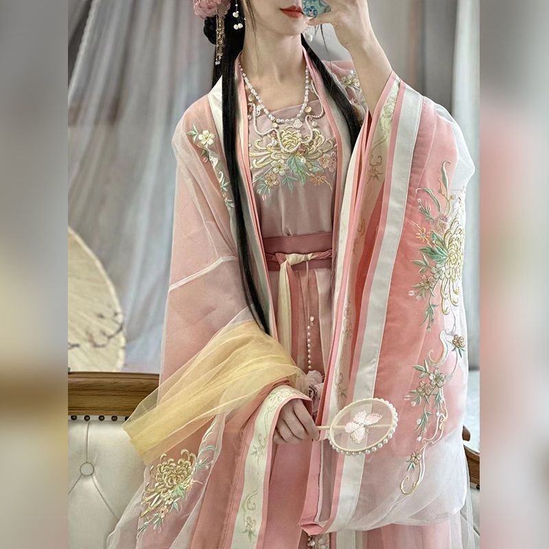 새로운 노래로 만든 Hanfu 여성의 복원 허리 길이 전체 세트 골동품 슈퍼 불멸의 자수 공주 봄과 여름 새로운 불멸의