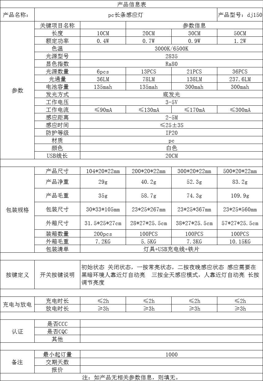 • 10cm 충전 모델-따뜻한 조명-유도 + 일정 조명 + 스위치