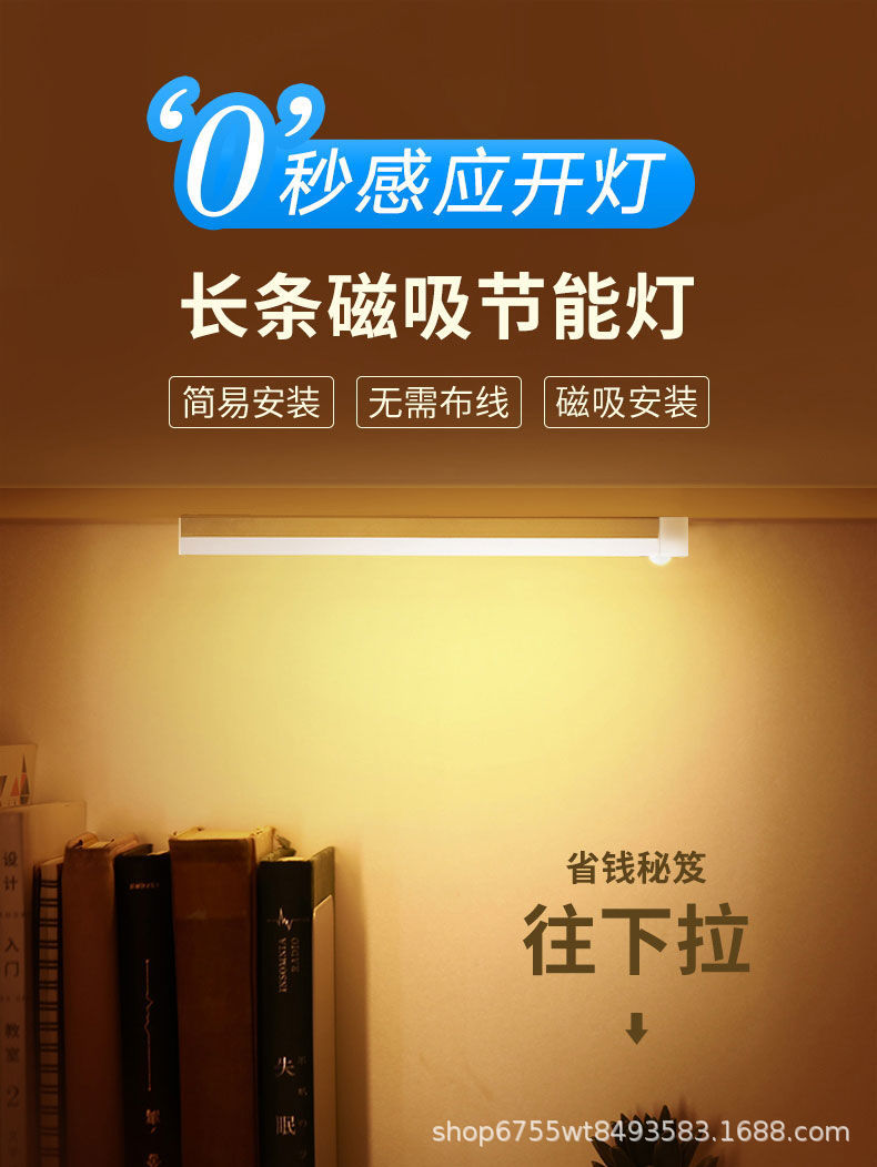 울트라 얇은 지능형 인체 유도 led 램프 긴 자기 접착 옷장 램프 충전식 와인 캐비닛 캐비닛 램프스토어 가기