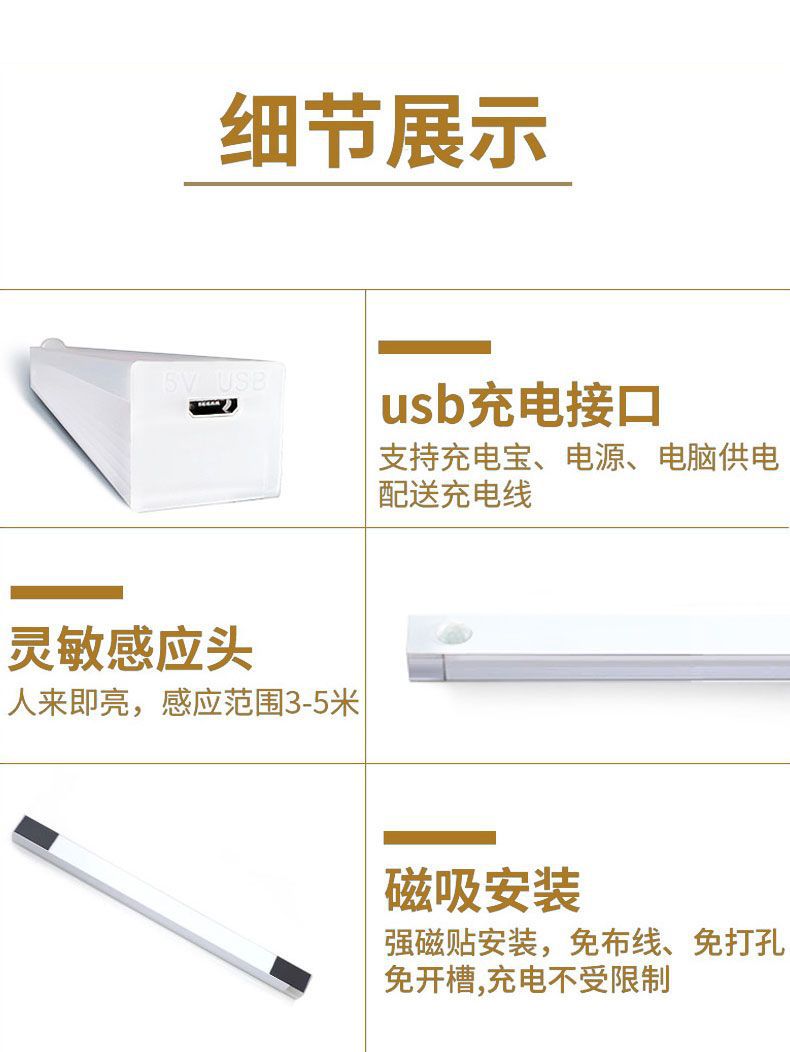 울트라 얇은 지능형 인체 유도 led 램프 긴 자기 접착 옷장 램프 충전식 와인 캐비닛 캐비닛 램프