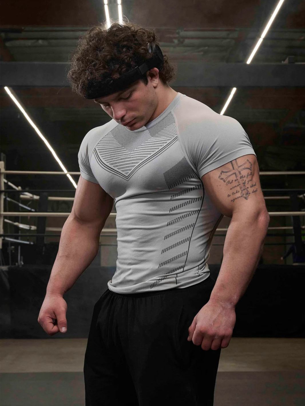 남성용 속건 피트니스 티셔츠 통기성 스포츠 러닝 트레이닝 고탄성 스타킹 반팔 스포츠 라글란 슬리브