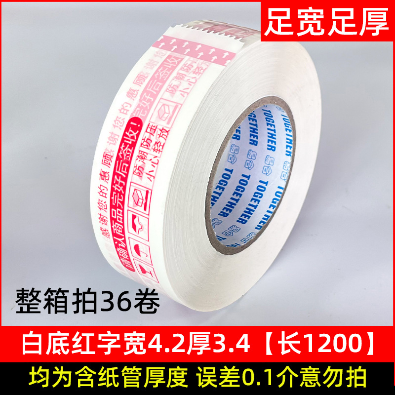 • 흰색 바탕에 빨간 글씨 [폭 4.2, 두께 3.4, 길이 1200] 한 박스 36롤; 1롤