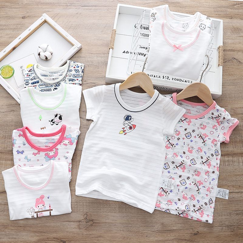 1 팩 가격 새로운 일본식 통기성 땀 흡수 부드러운 소년 소녀 봄과 여름 바닥 홈 반소매 티셔츠스토어 가기