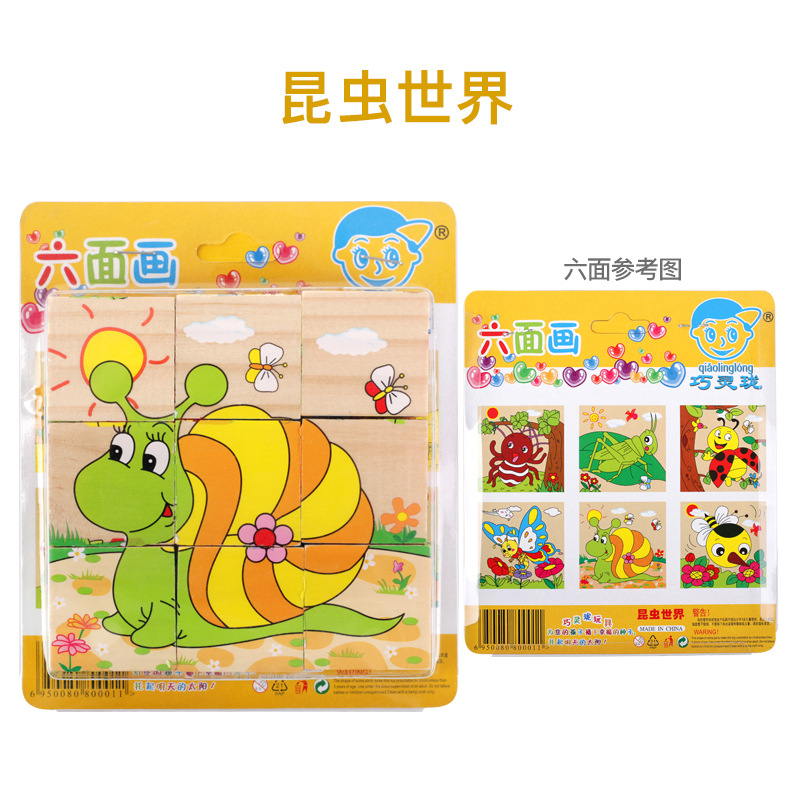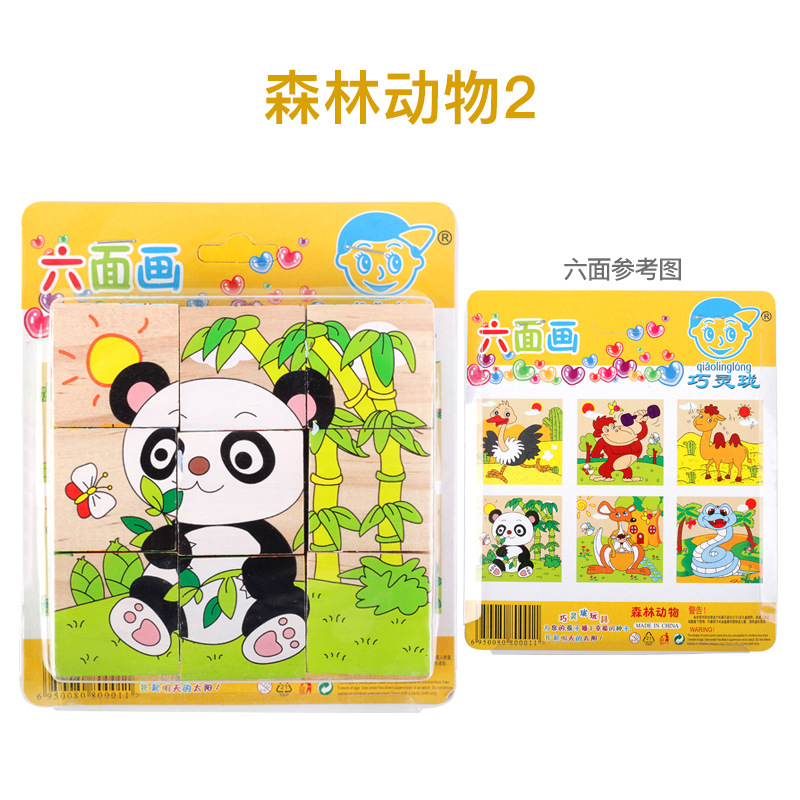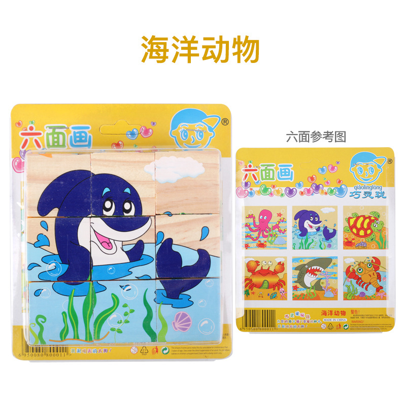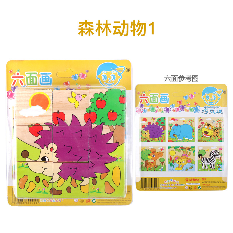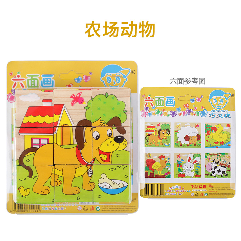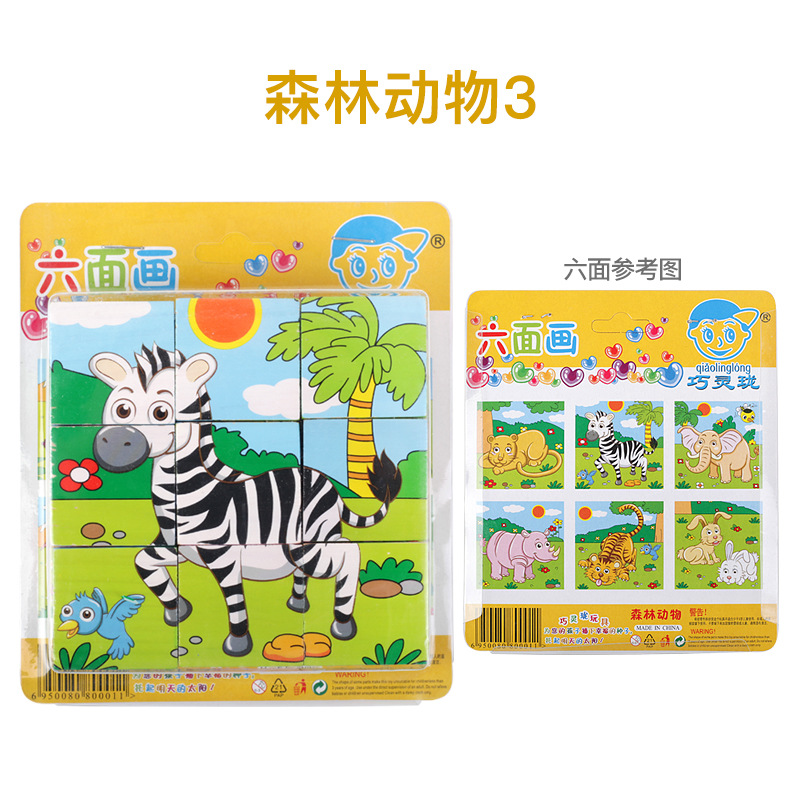 육면 그림 퍼즐 입체 3D 모델 2-6 세 어린이 아기 조기 교육 조립 퍼즐 빌딩 블록 장난감 큰 입자 4