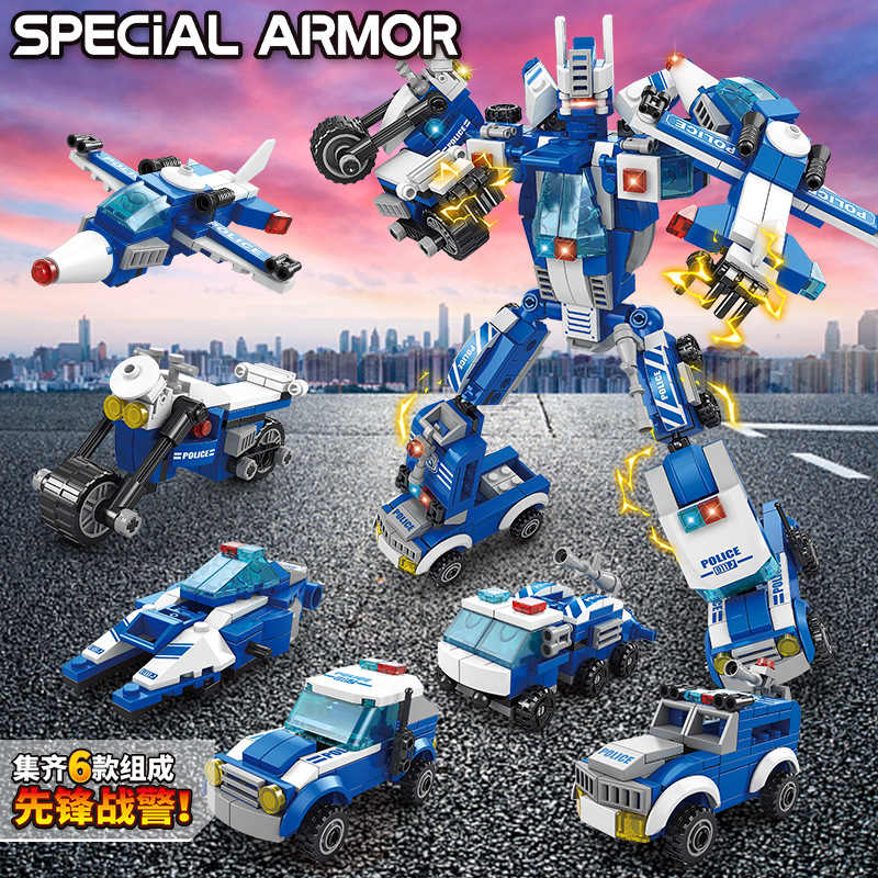 8868 경찰 메카 조립 빌딩 블록 6 대 소녀 성 모델 변형 엔지니어링 차량 로봇 장식품스토어 가기