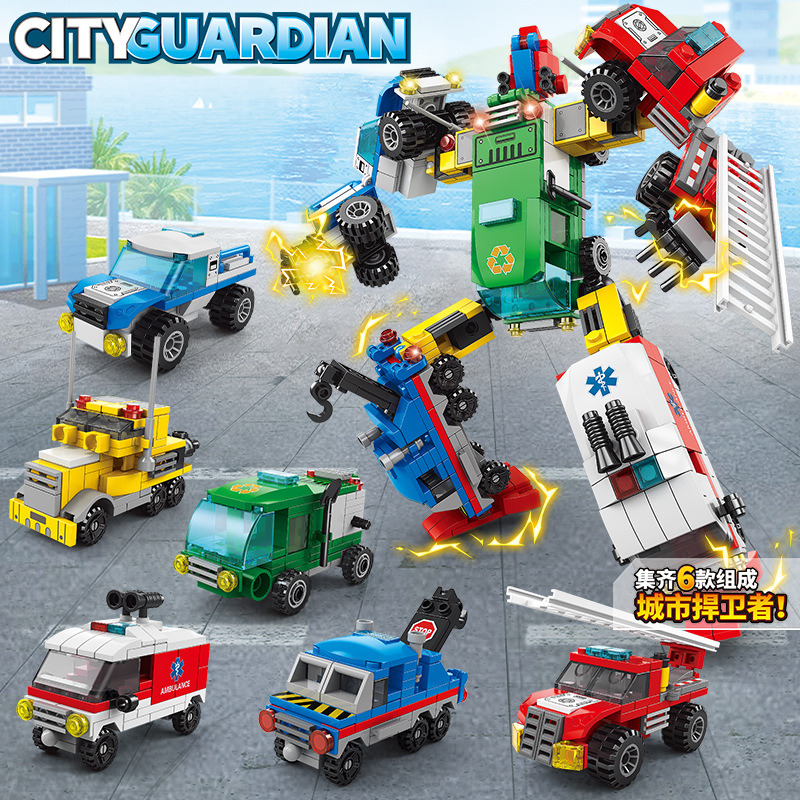 8868 경찰 메카 조립 빌딩 블록 6 대 소녀 성 모델 변형 엔지니어링 차량 로봇 장식품