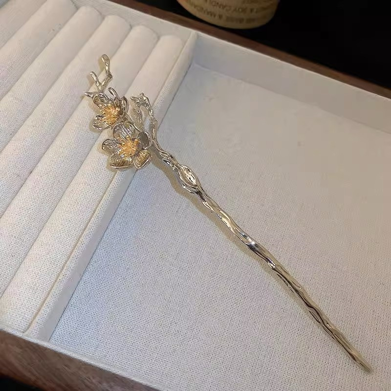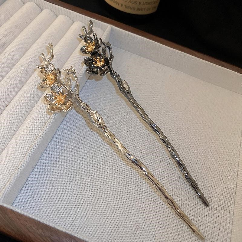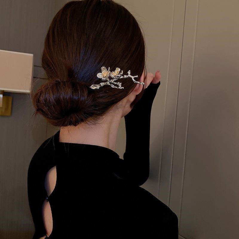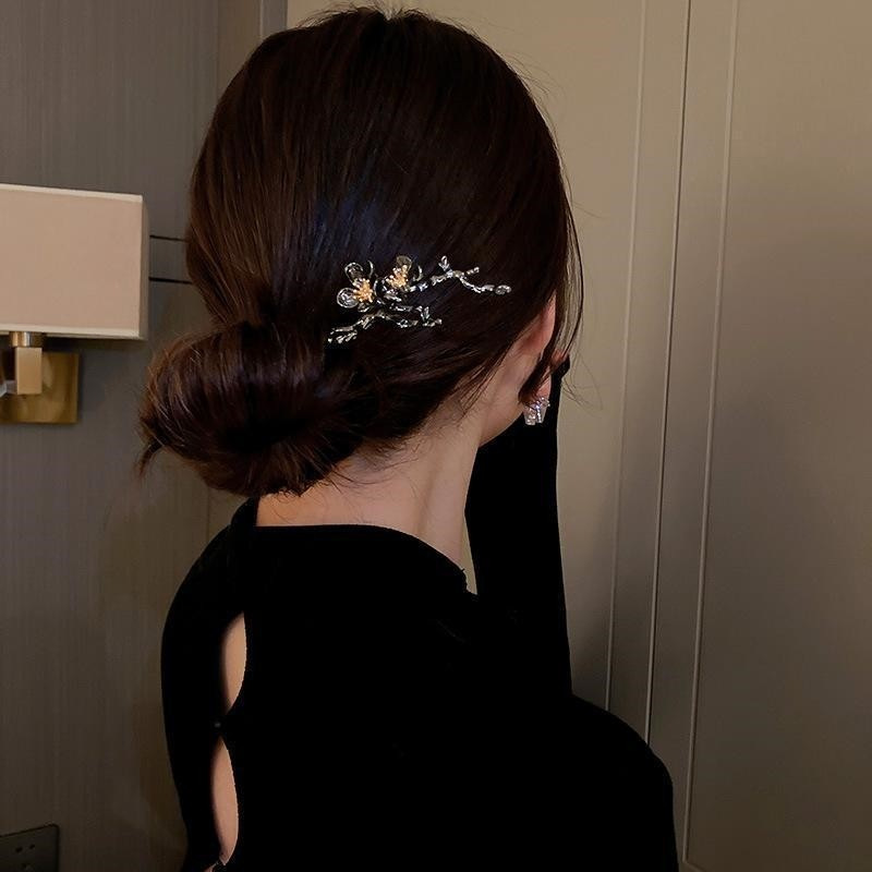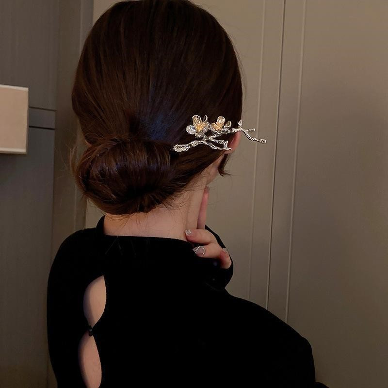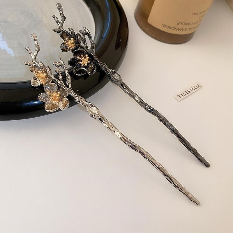 새로운 중국 스타일 헤어 액세서리 여성용 매화 꽃 금속 머리핀 고급 머리 머리핀 간단한 틈새 디스크 헤어 걸쇠 골동품 모자