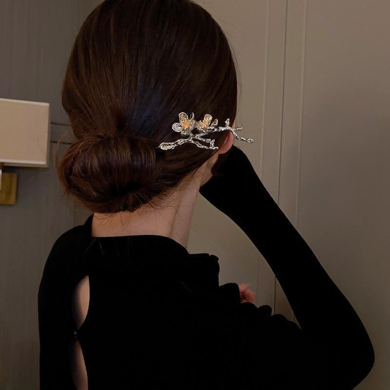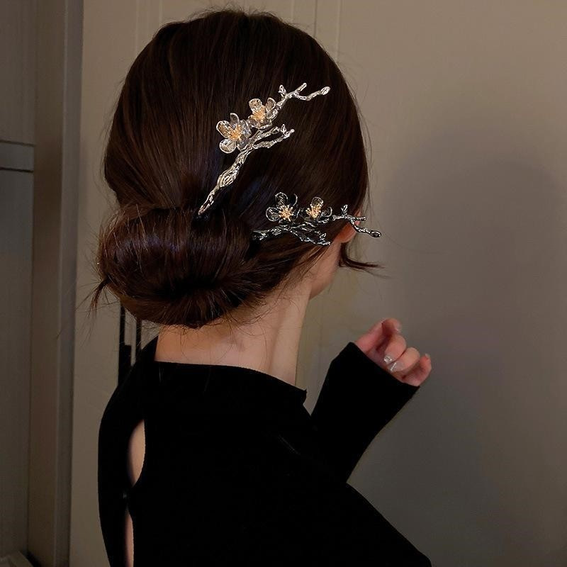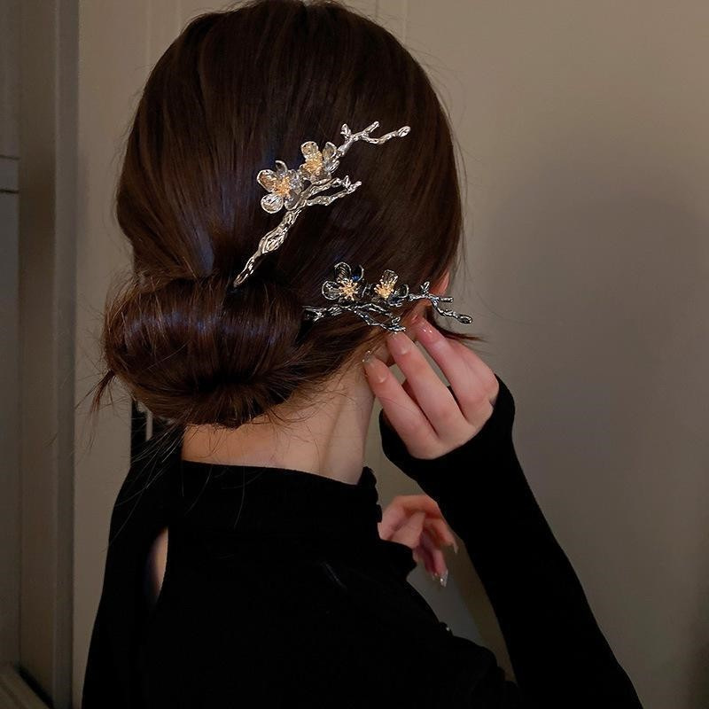 새로운 중국 스타일 헤어 액세서리 여성용 매화 꽃 금속 머리핀 고급 머리 머리핀 간단한 틈새 디스크 헤어 걸쇠 골동품 모자스토어 가기