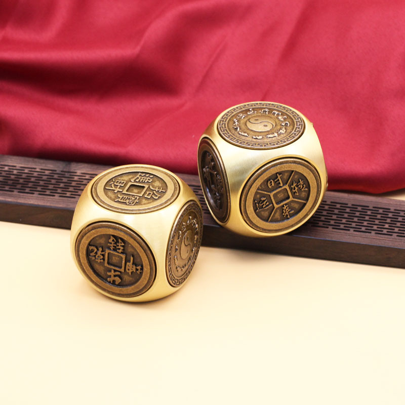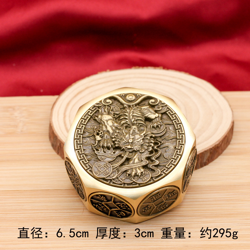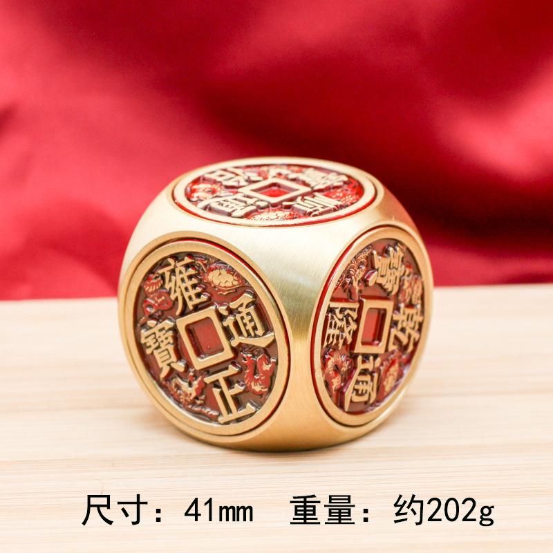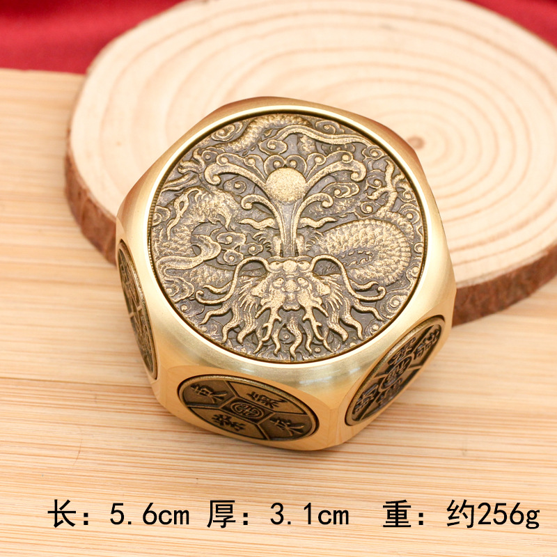 黄铜六面转手把件招财转运八面转转摆件解压指尖陀螺十二生肖魔方