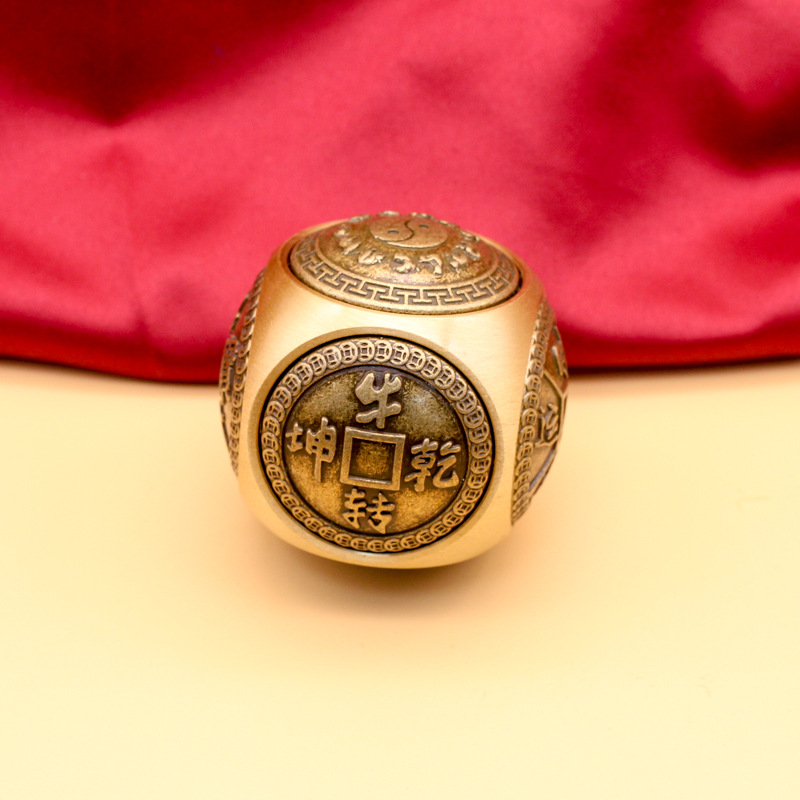 黄铜圆形六面转解压魔方手把件时来运转八方来财八面转转健身礼品