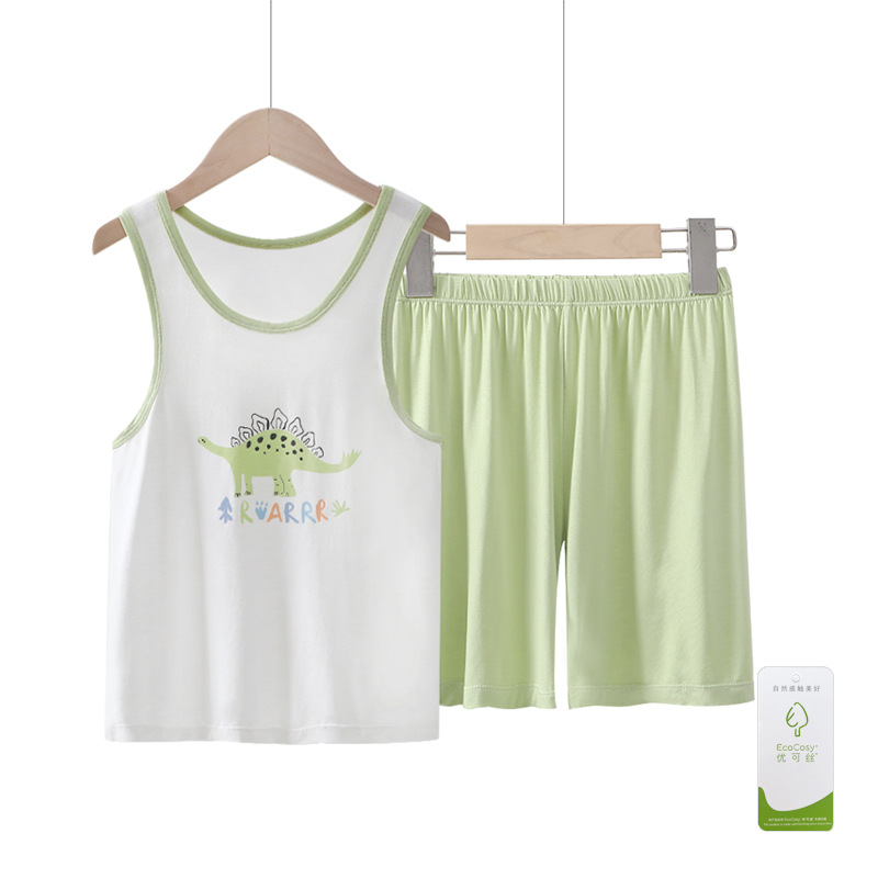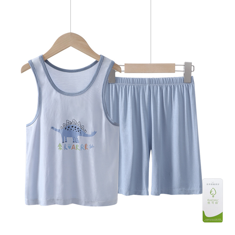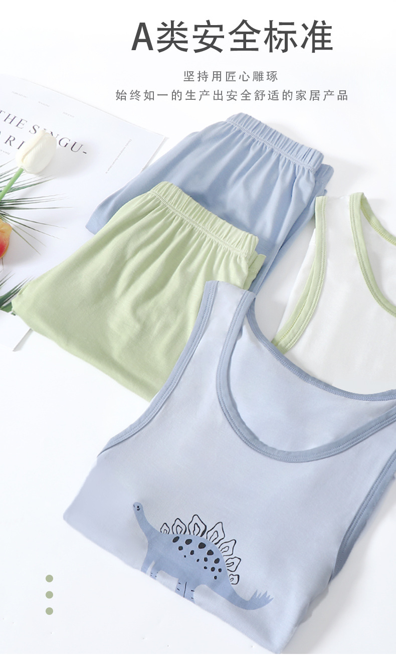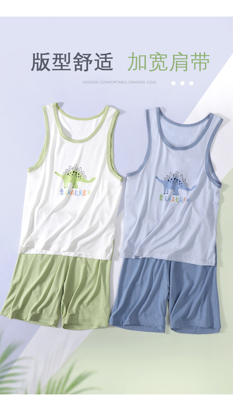 모달 신체 감각 어린이 여름 조끼 반바지 세트 새로운 소년 큰 어린이 조끼 아이스 실크 세트