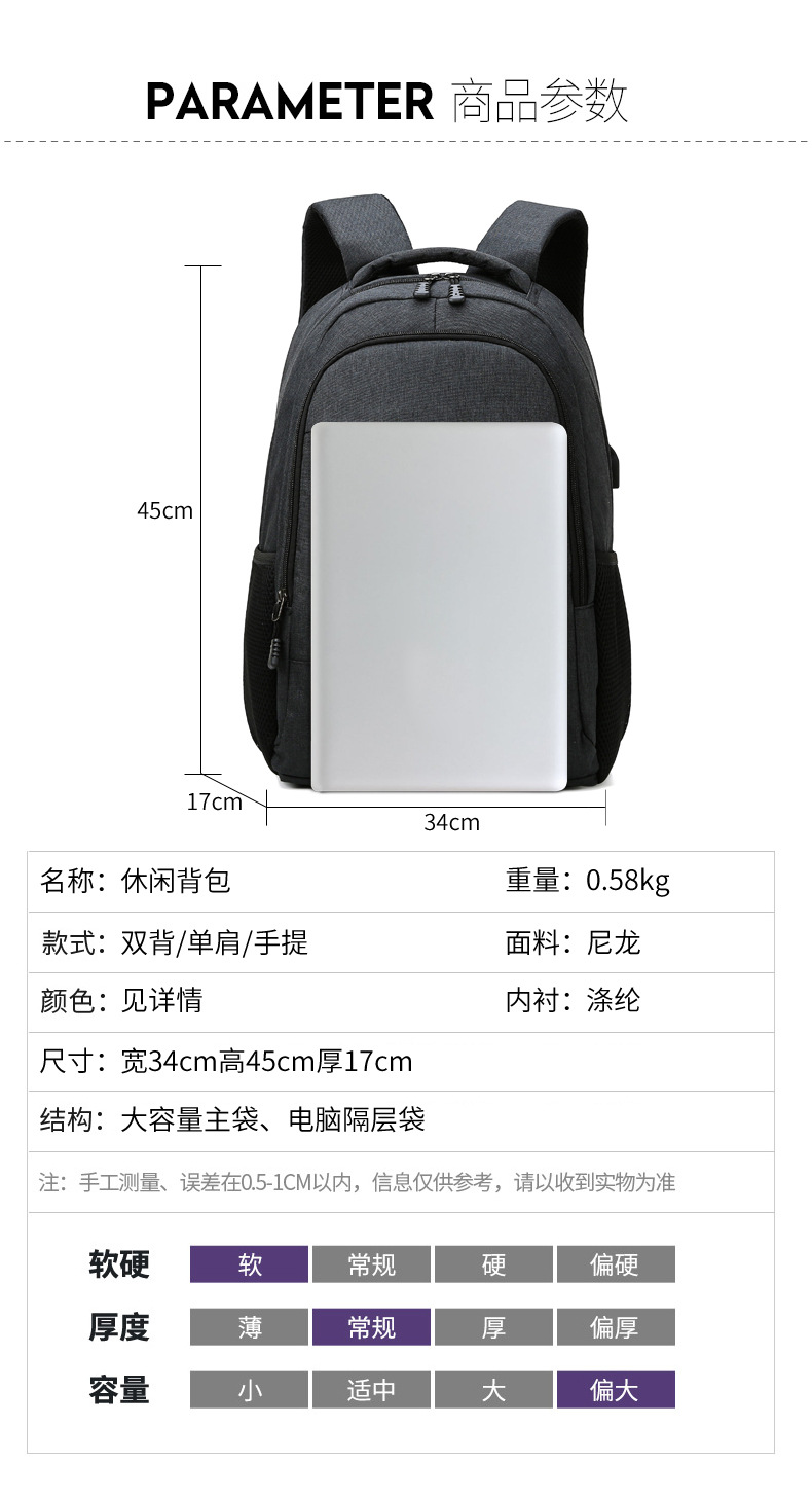 대용량 배낭 남성용 비즈니스 여행 배낭 컴퓨터 가방 15 인치 캐주얼 야외 학생 책가방