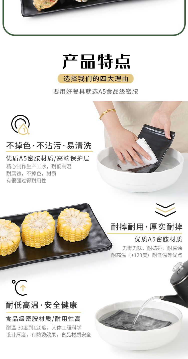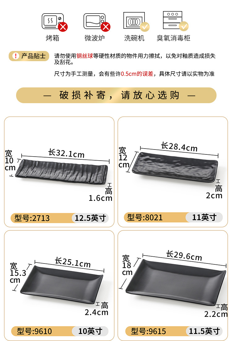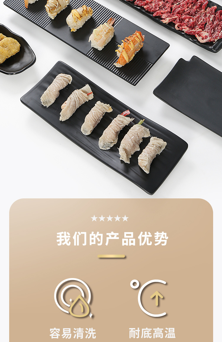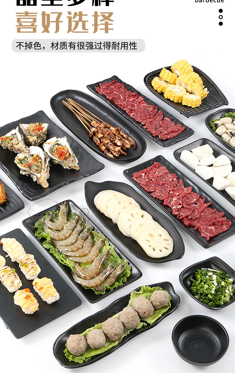 멜라민 식기 소 냄비 접시 반찬 접시 직사각형 플라스틱 초밥 긴 접시 저녁 접시 시판의 긴 접시스토어 가기