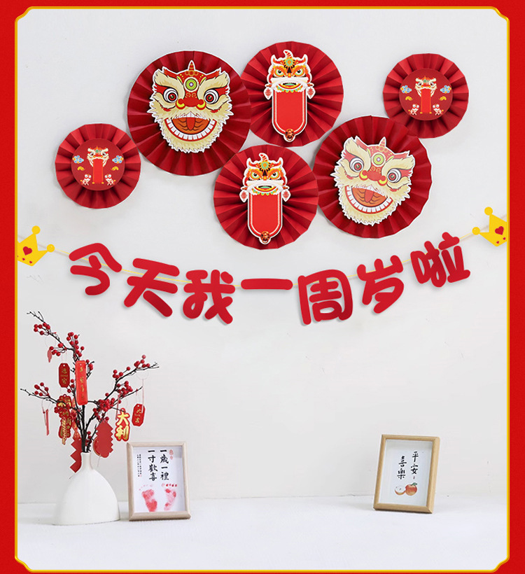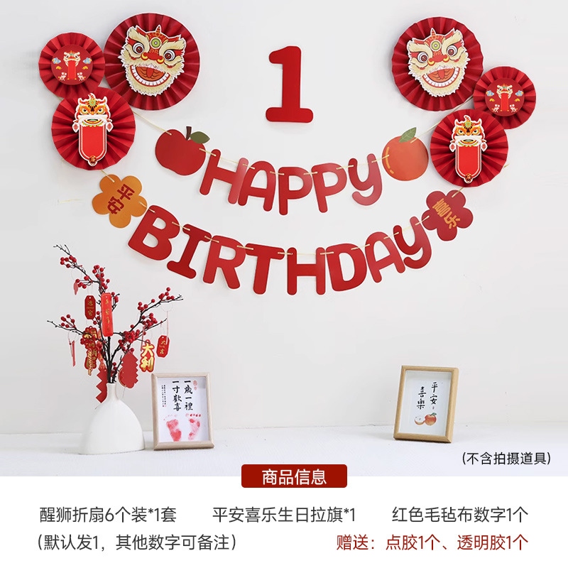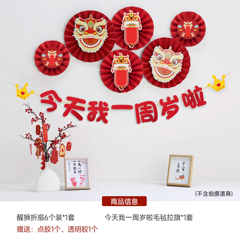 선물 생일 장식 용품 잡아 주 소품 레이아웃 사자 종이 팬 깃발 생일 선물 상자 세트 어린이 선물