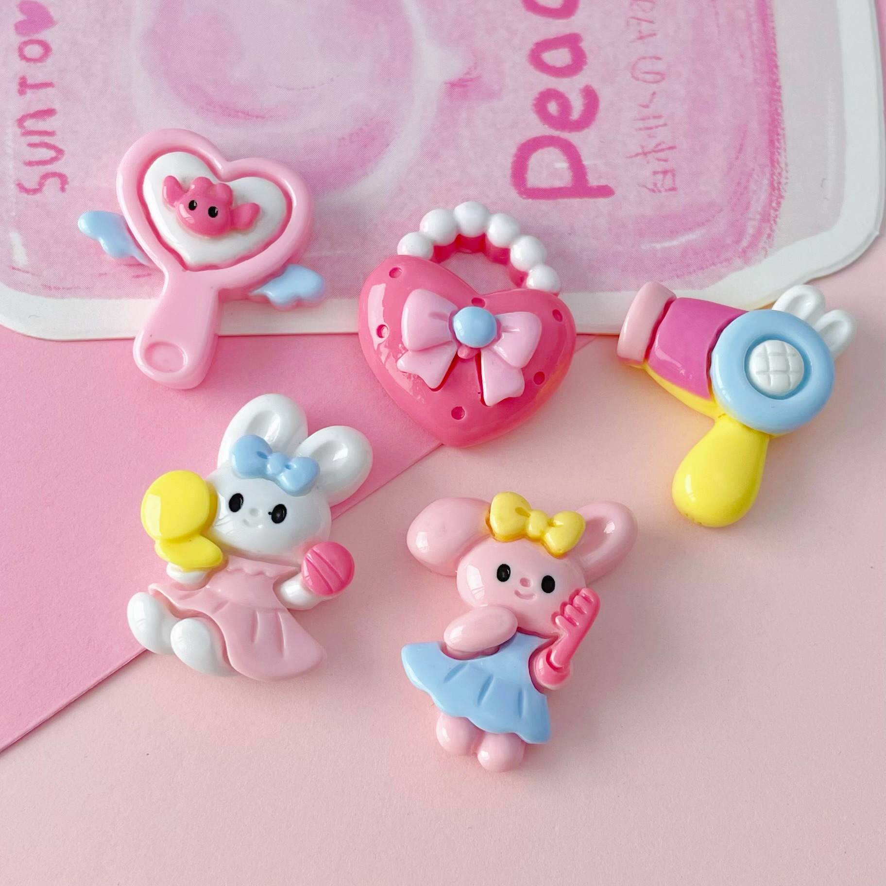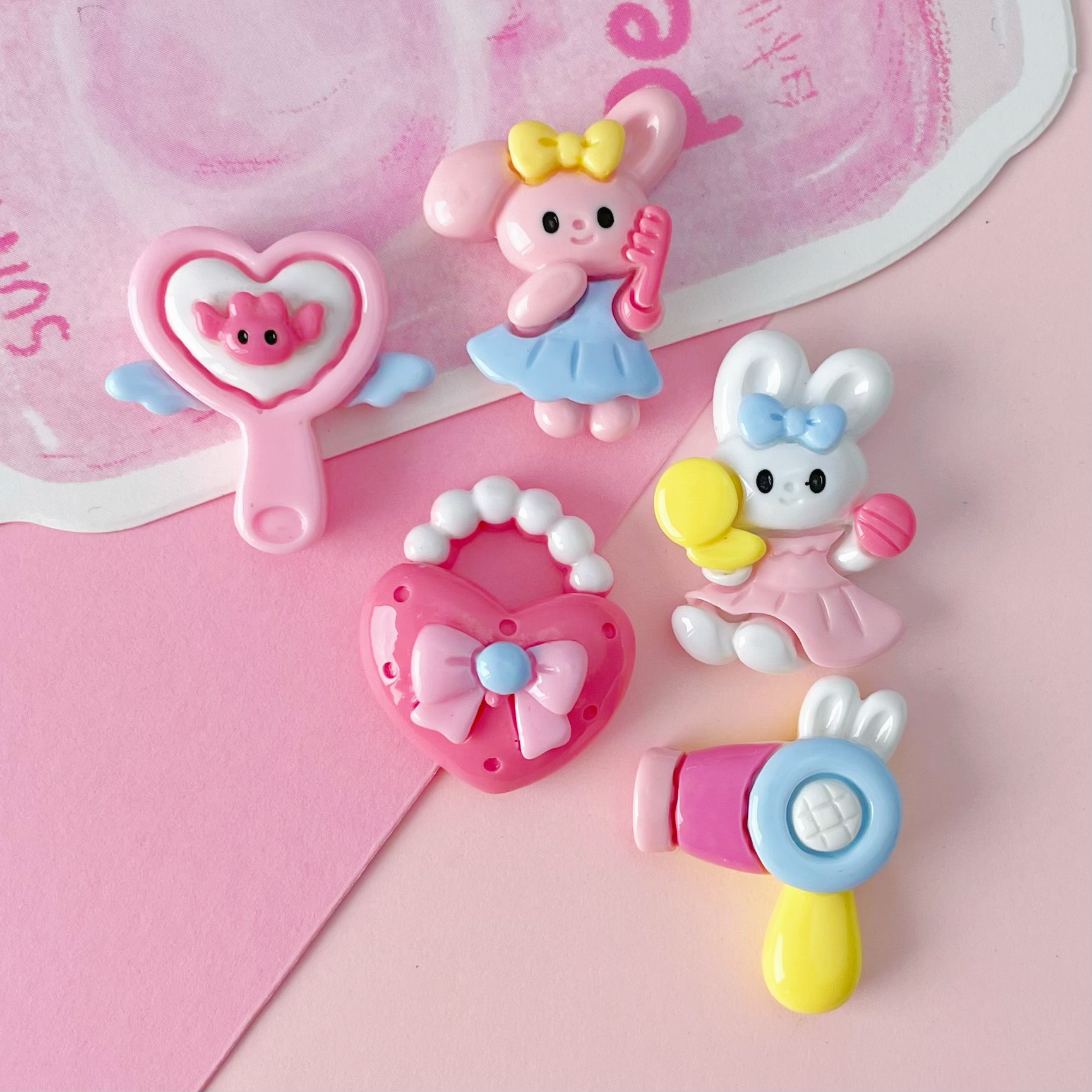 드레싱 토끼 수지 액세서리 밝은 얼굴 메이크업 토끼 헤어 드라이어 사랑 가방 DIY 수제 재료 크림 접착제