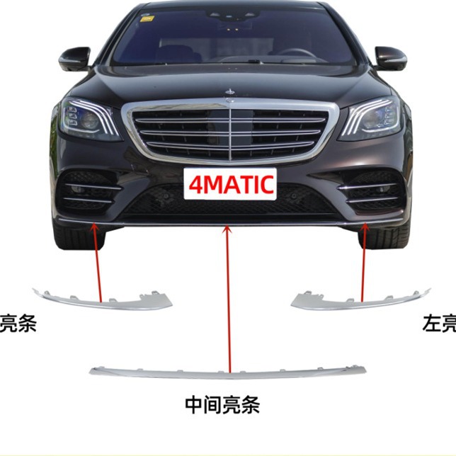 메르세데스-벤츠 S-클래스 S500L 전면 범퍼 밝은 스트립 S450L 전기 도금 S560L 전면 립 트림 스트립 W222 4 륜 구동 크롬에 적용 가능스토어 가기