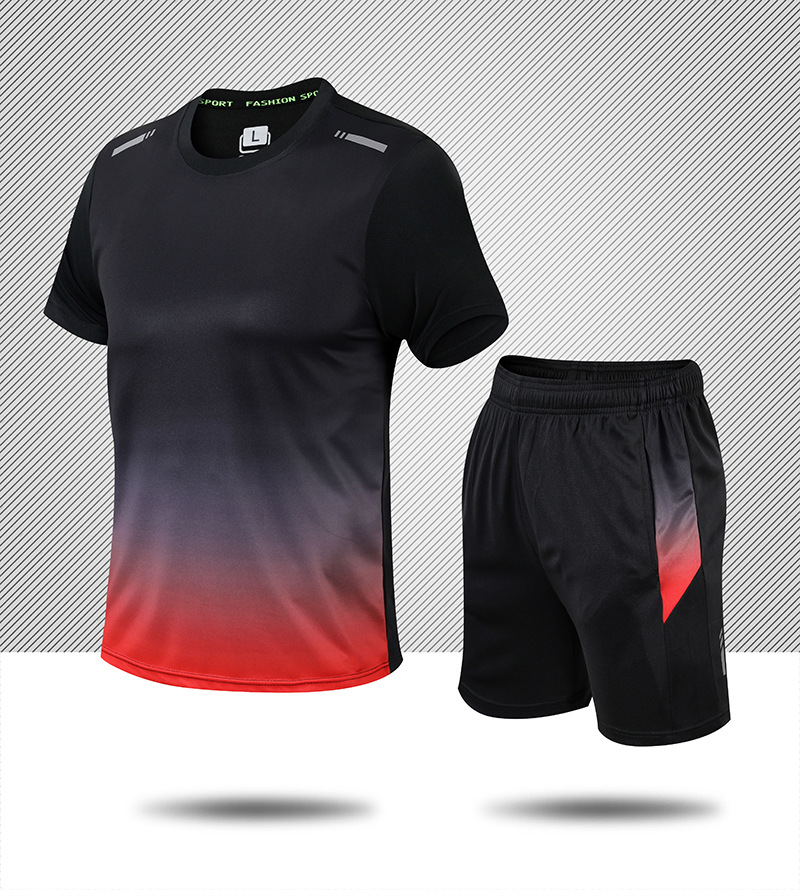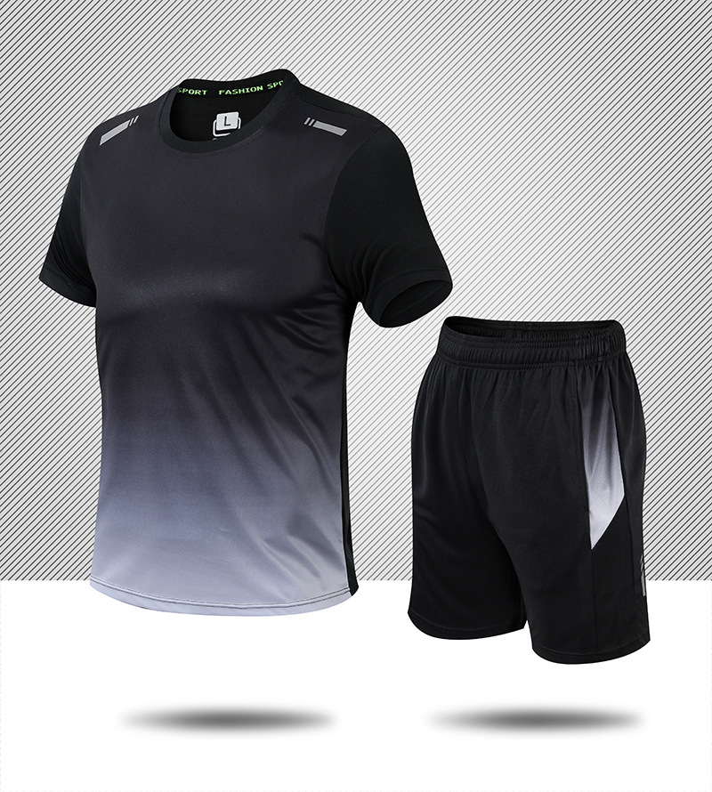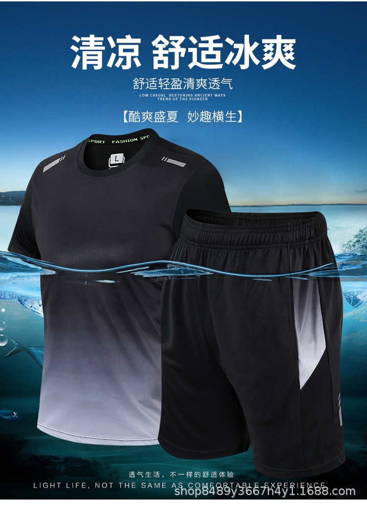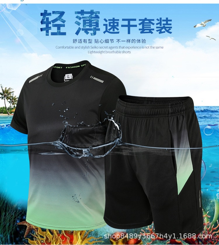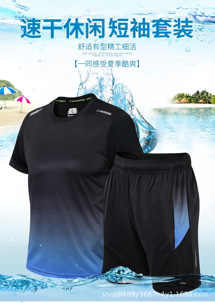 공장 직공급 남자의 속건 스포츠 세트 남자의 여름 반팔 반바지 남자의 달리기 피트니스 스포츠웨어 세트