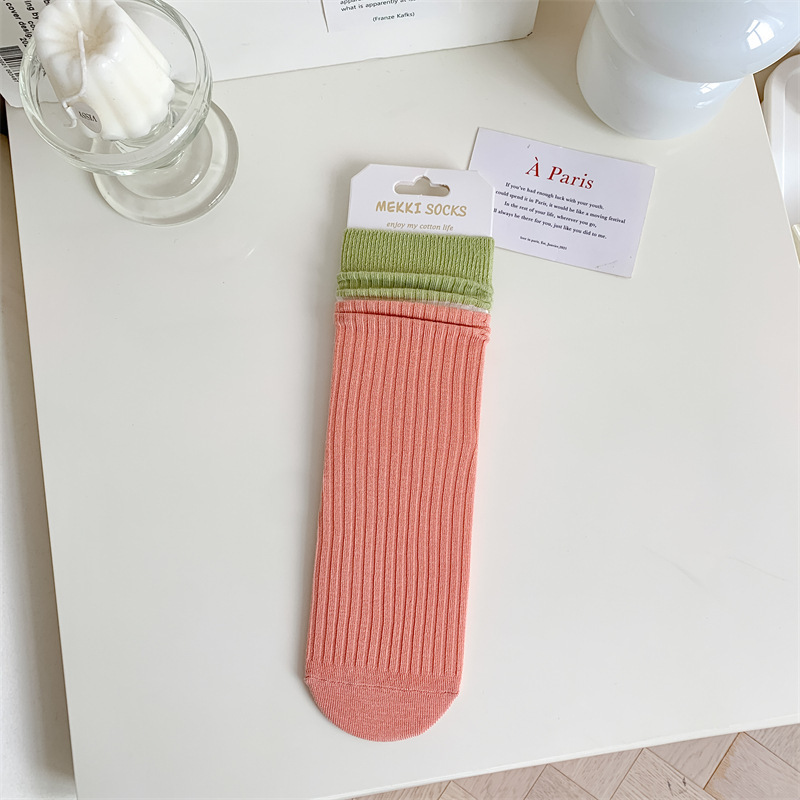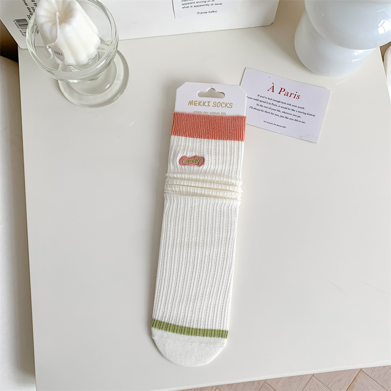 2023 새로운 대나무 면화 편지 자수 줄무늬 숙녀 더블 바늘 양말 더미 양말 도매 얇은 여성 양말