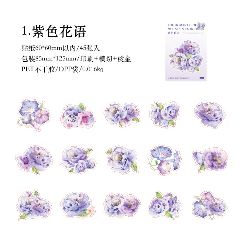 황혼 PET 금 스티커 가방 산 꽃 피는 시리즈 꽃 손 계정 DIY 장식 스티커 45