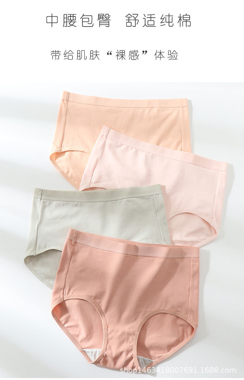 플러스 사이즈 팬티 여자의 중간 허리 단색 피부 친화적 인 부드러운 면 바닥 가랑이 일본 스타일 추적 통통녀 여자의 팬티스토어 가기