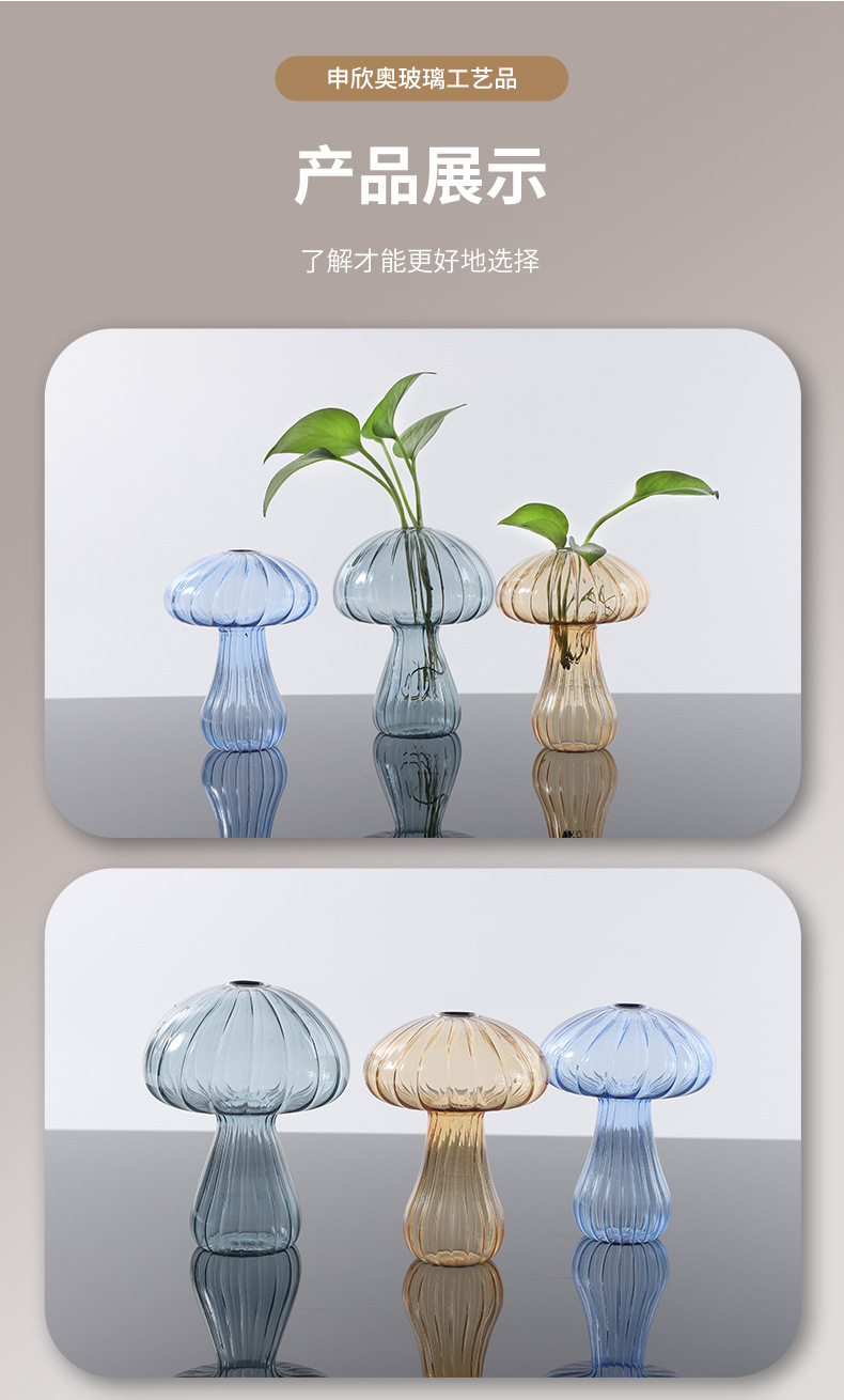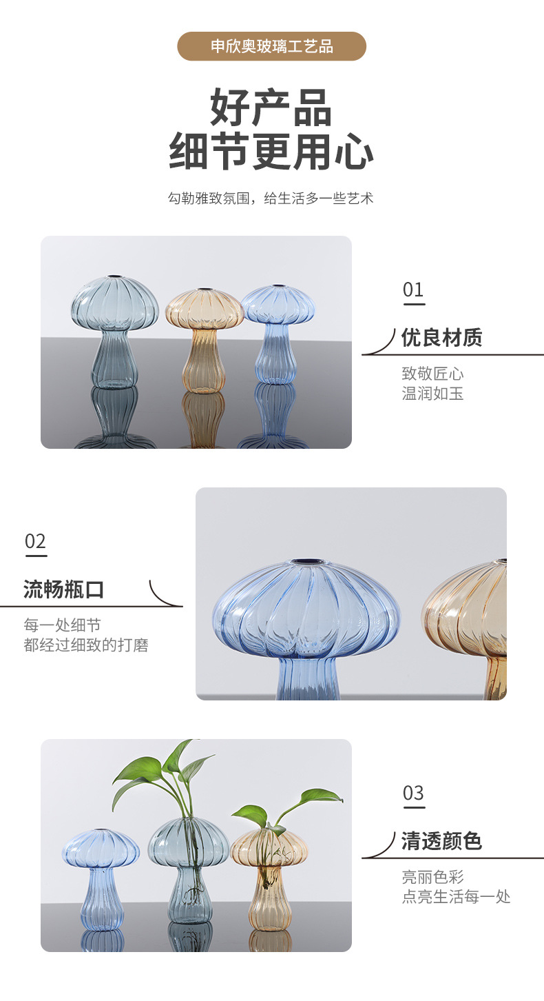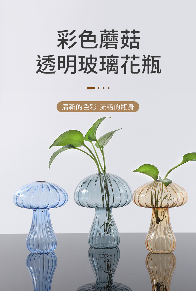색상 창조적 인 버섯 유리 꽃병 수경 식물 녹색 장미 히아신스 특수 모양의 유리 작은 꽃병 데스크탑 장식품스토어 가기