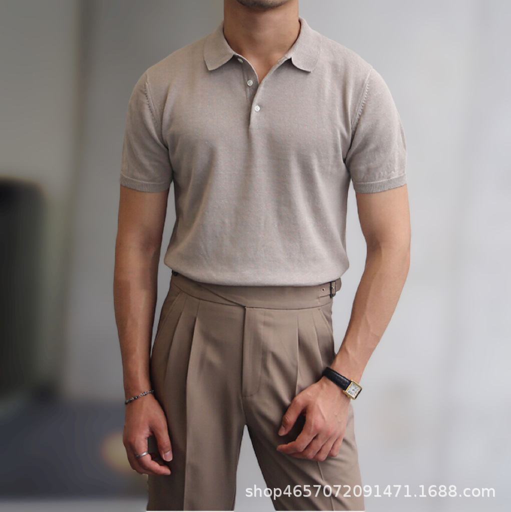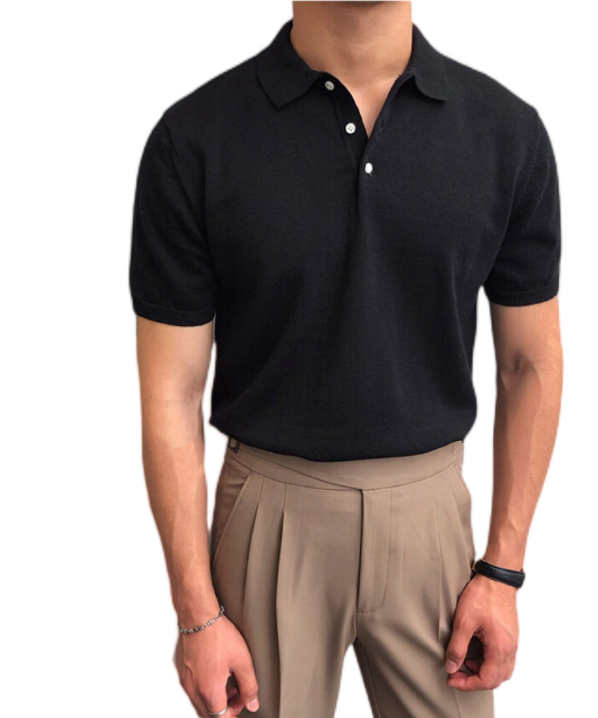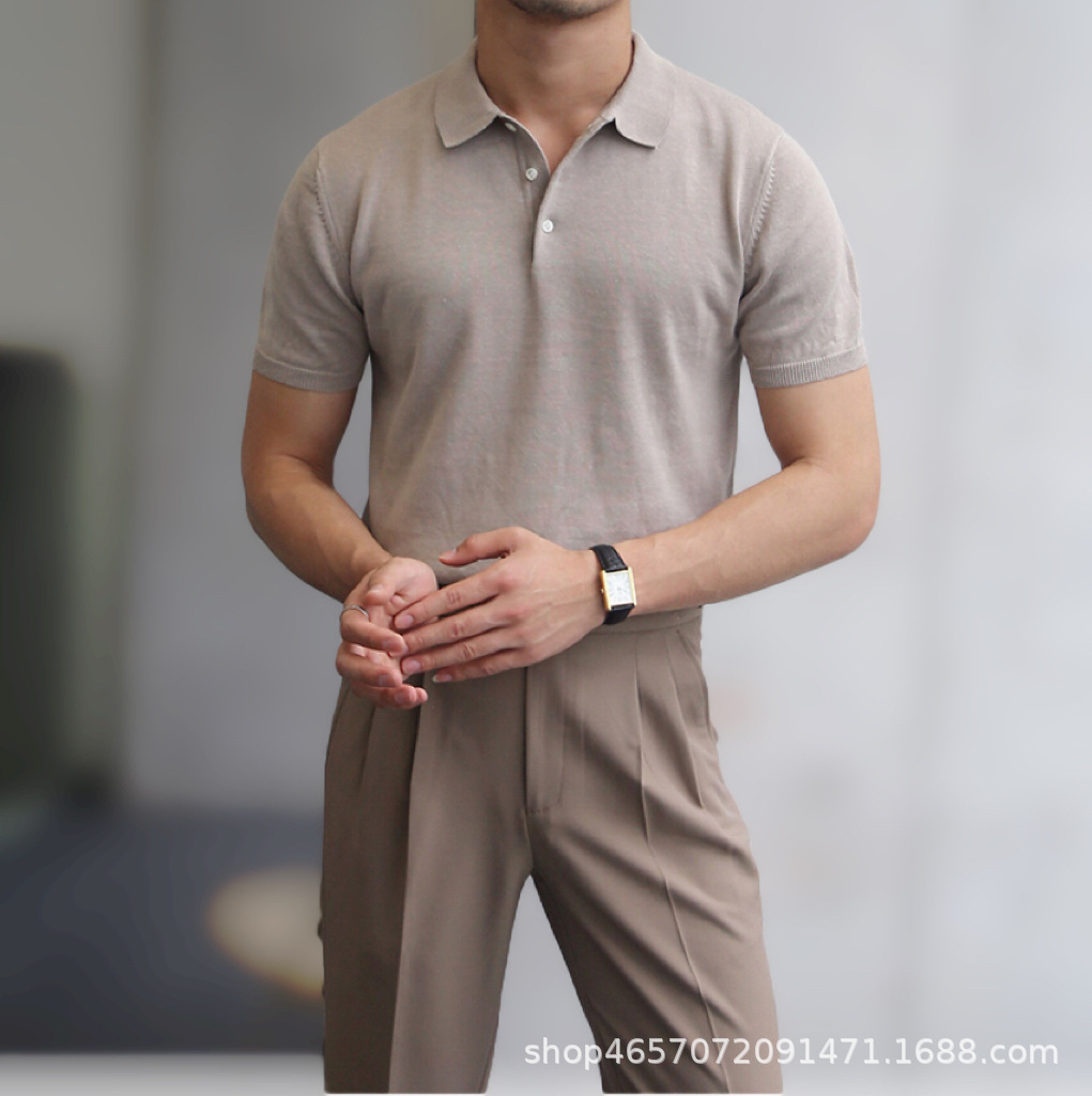여름 얇은 반팔 남성 의류 슬림 캐주얼 폴로 셔츠 한국 패션 심플 티셔츠 반팔 트렌디 남성 유럽 버전