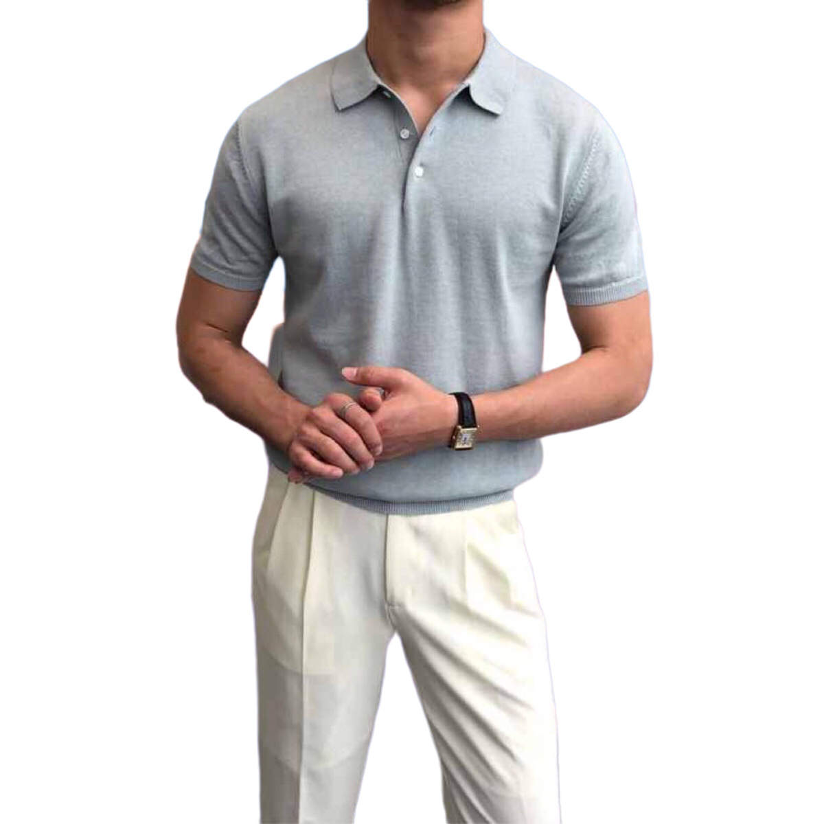여름 얇은 반팔 남성 의류 슬림 캐주얼 폴로 셔츠 한국 패션 심플 티셔츠 반팔 트렌디 남성 유럽 버전스토어 가기