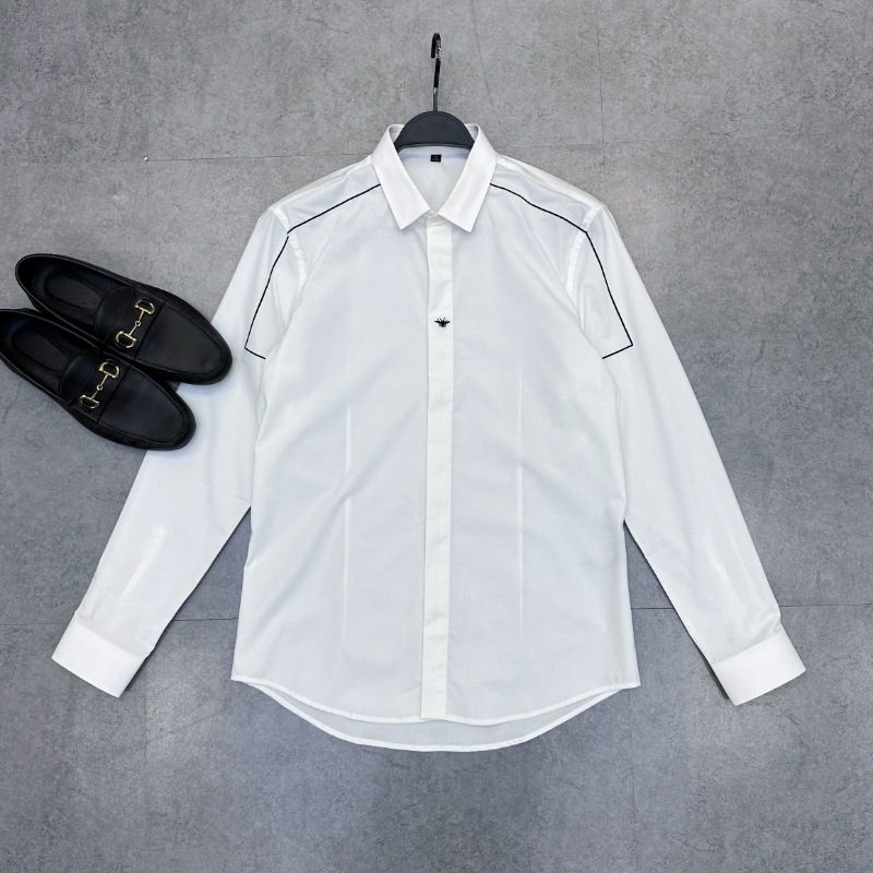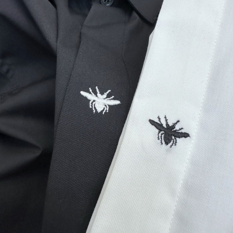 남자의 새로운 유럽 역 꿀벌 자수 셔츠 패션 비즈니스 슬림 흑백 캐주얼 셔츠 B1CAD2003스토어 가기
