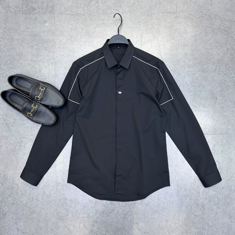남자의 새로운 유럽 역 꿀벌 자수 셔츠 패션 비즈니스 슬림 흑백 캐주얼 셔츠 B1CAD2003