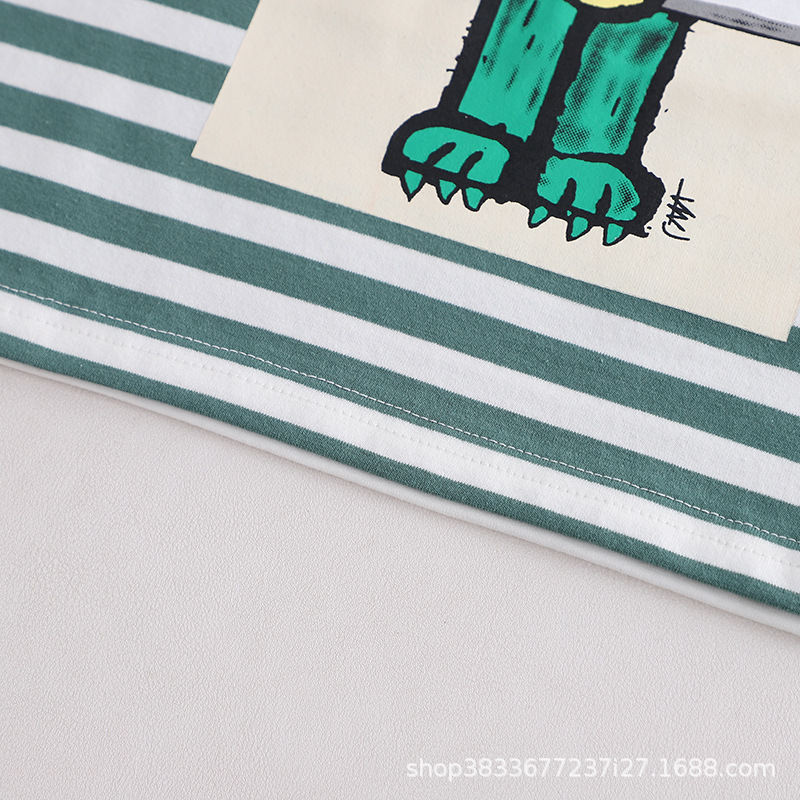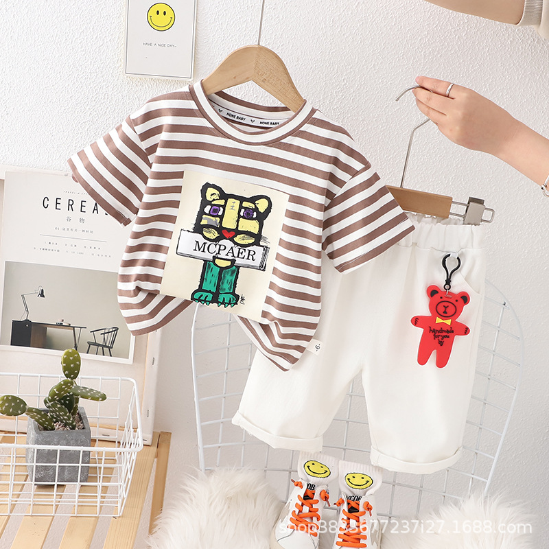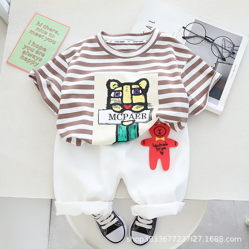 여름 새 어린이 세트 소년과 소녀 만화 호랑이 패션 라운드 넥 셔츠 반팔 반바지 머리카락의 세대의 2 피스 세트