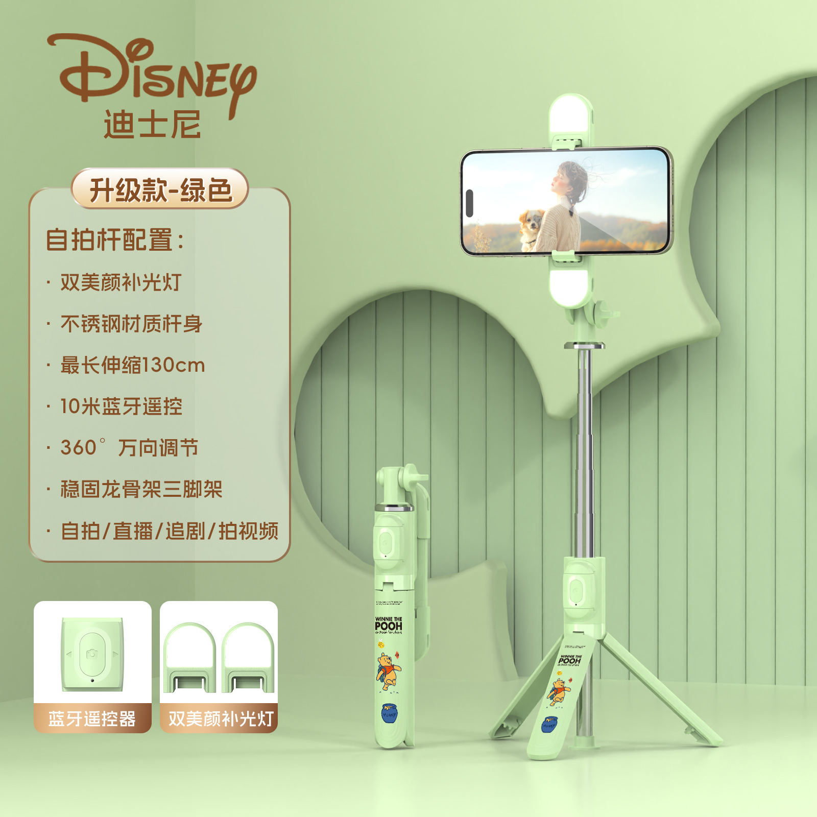 휴대폰 셀카봉 디즈니 무선 블루투스 삼각대 사진 유물 360도 회전식 스탠드